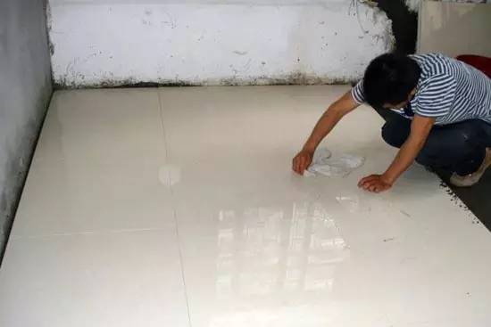 待填縫劑凝結后,用海綿清洗瓷磚表面,正常釉面瓷磚用清水清洗即可;如瓷磚表面吸水量過高,填縫劑滲入瓷磚,需用專用瓷磚清洗劑清洗。