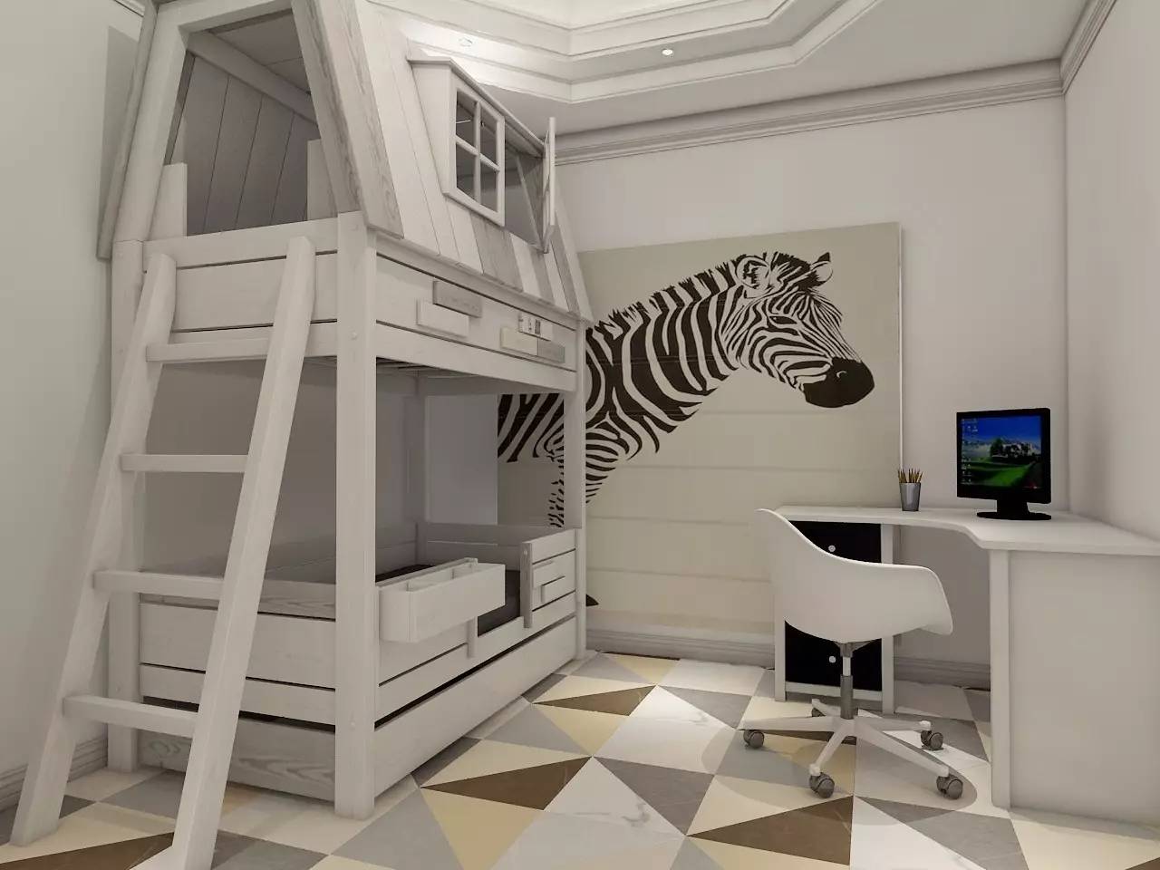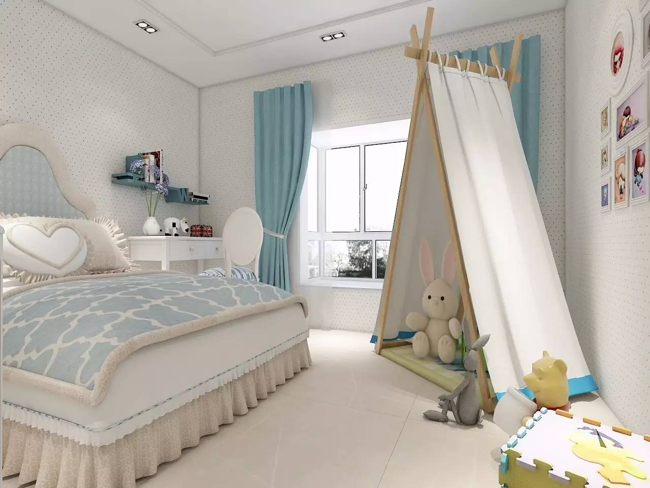 兒童房需要色彩,但也不適宜顏色太多、太過跳躍,否則會讓孩子緊張或者躁動,也易審美疲勞。