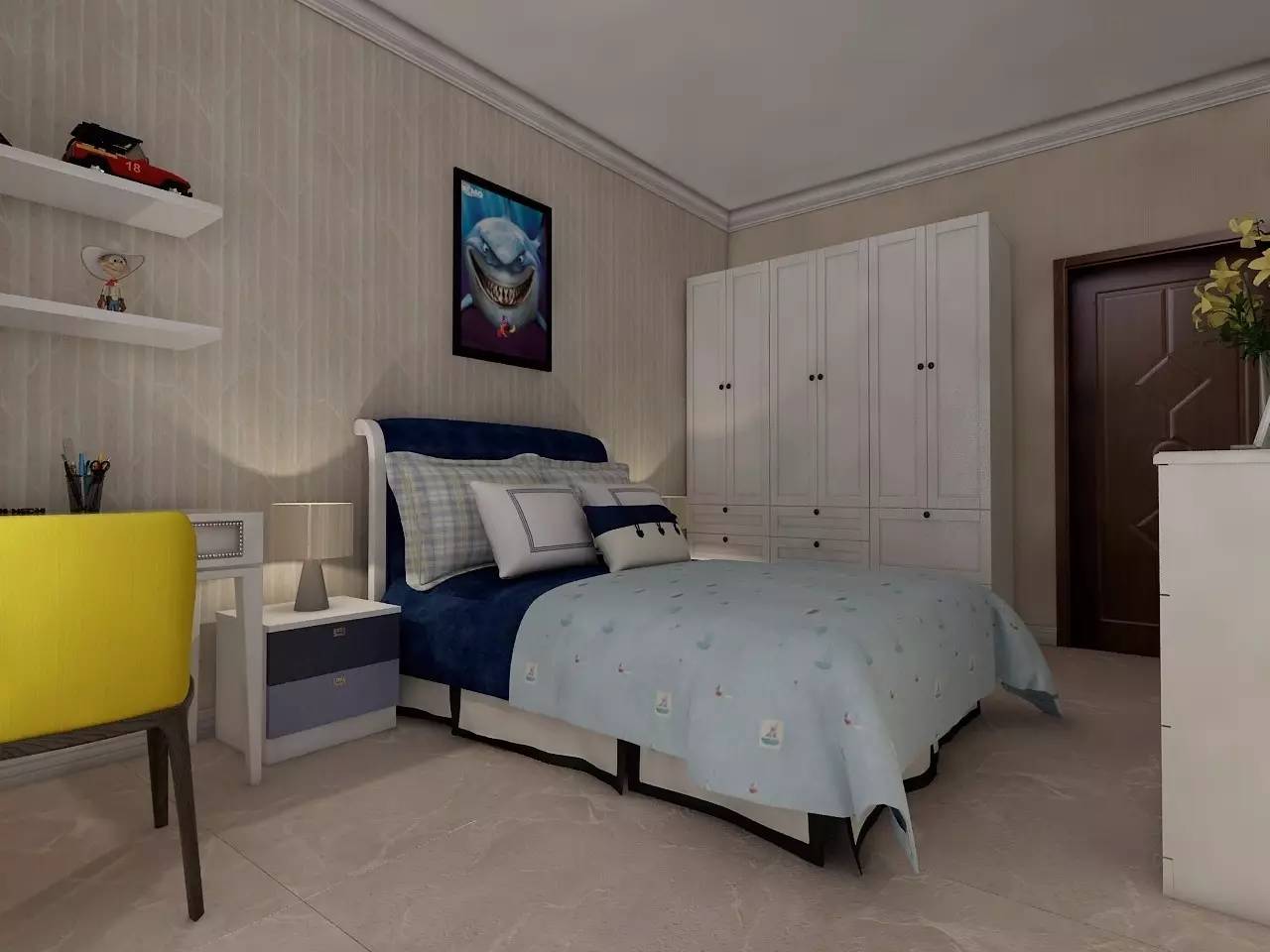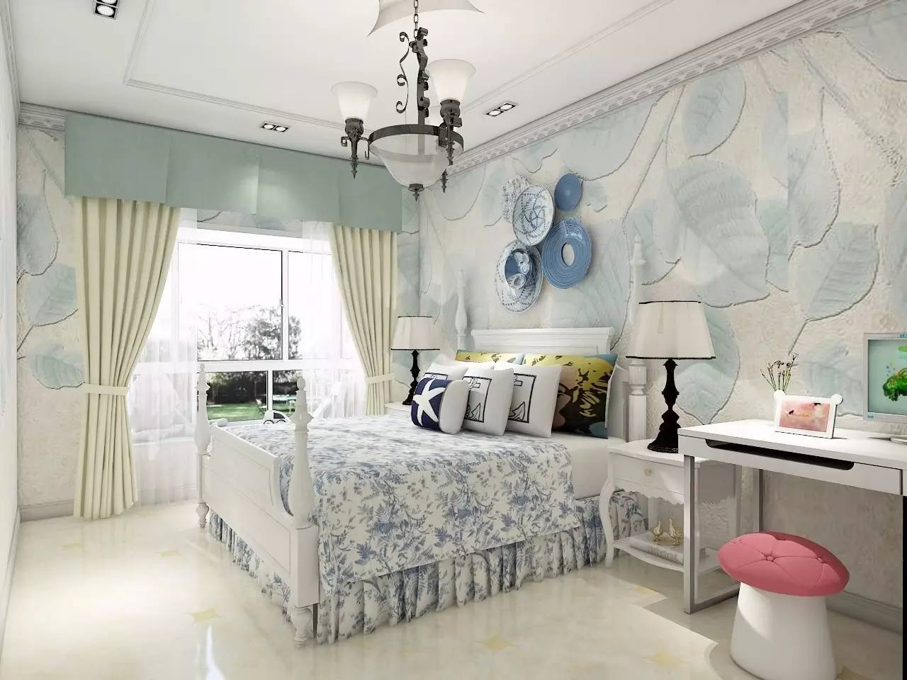 尊重孩子意見選擇主色調,添加對比色,家具、墻面、地板甚至軟配飾都需要整體協調。