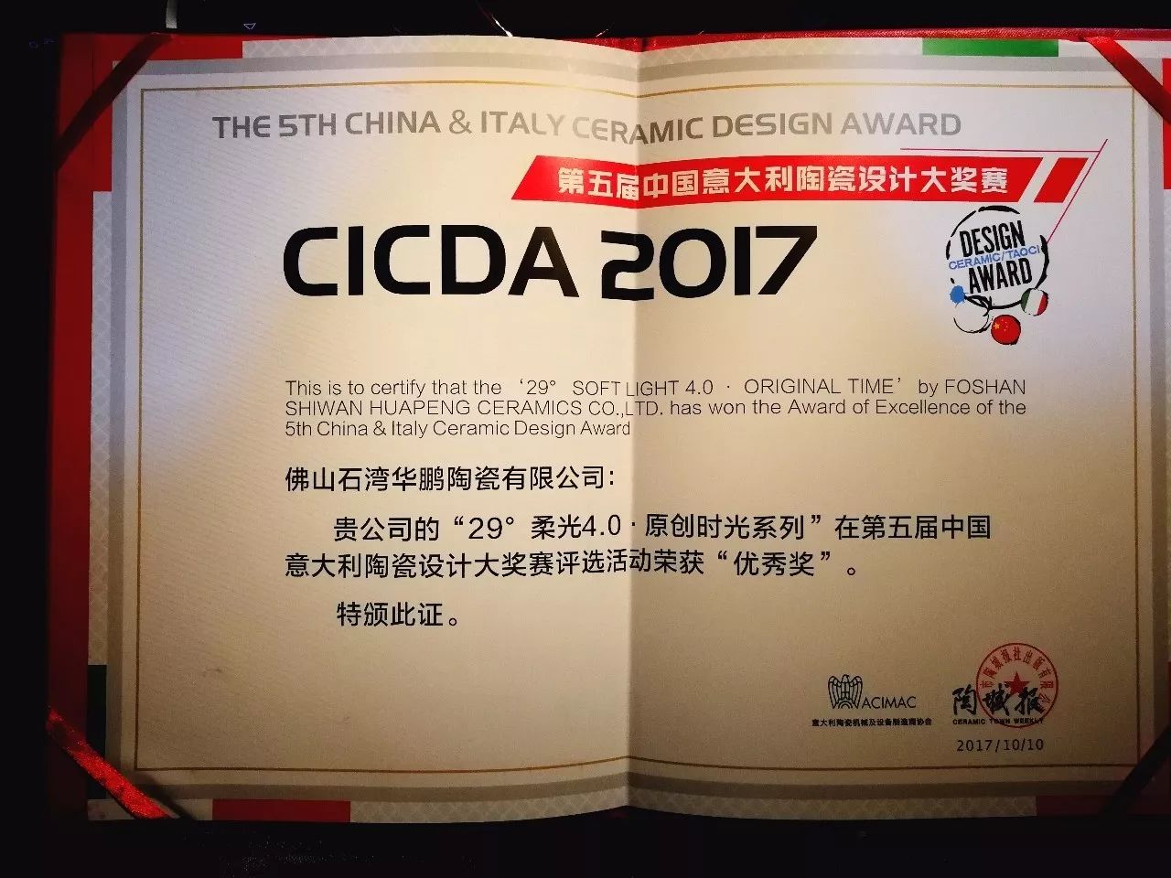 ▲29°柔光原創時光系列獲意大利陶瓷設計大獎賽評選“優秀獎”