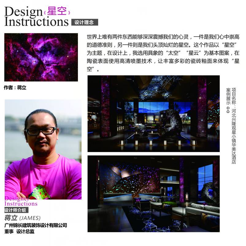 “紅棉獎·最美瓷磚設計獎”自2015年創立以來,已經成功舉辦三屆。據主辦方透露,本屆評選共征集105套產品設計概念方案,其中有效參評方案93套,最終來自設計師蔣立的《星空》、設計師沈雨翔的《Every Step Counts》、廣州道勝設計有限公司的《竹石》、廣州普利策裝飾設計有限公司的《冰·熔》共4套瓷磚產品設計概念方案憑借著新穎的理念、獨具一格的設計在一眾參評作品中成功突圍,摘得桂冠!