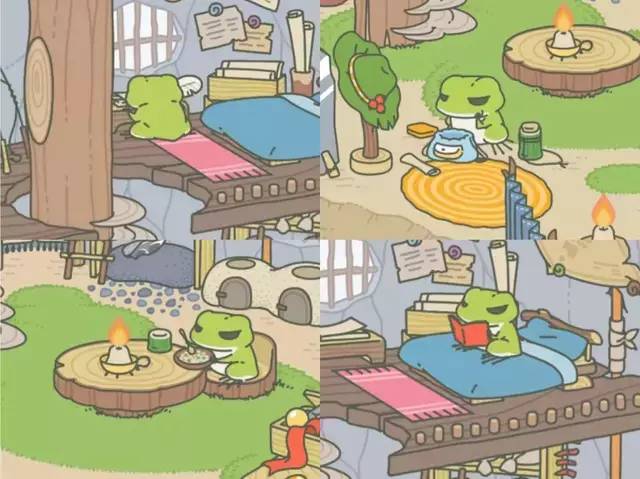 這只青蛙的“蛙設”非常萌!在家時完全是“乖寶寶”的姿態:吃飯、讀書、削鉛筆、寫東西……忙碌中透露著一絲無聊。
