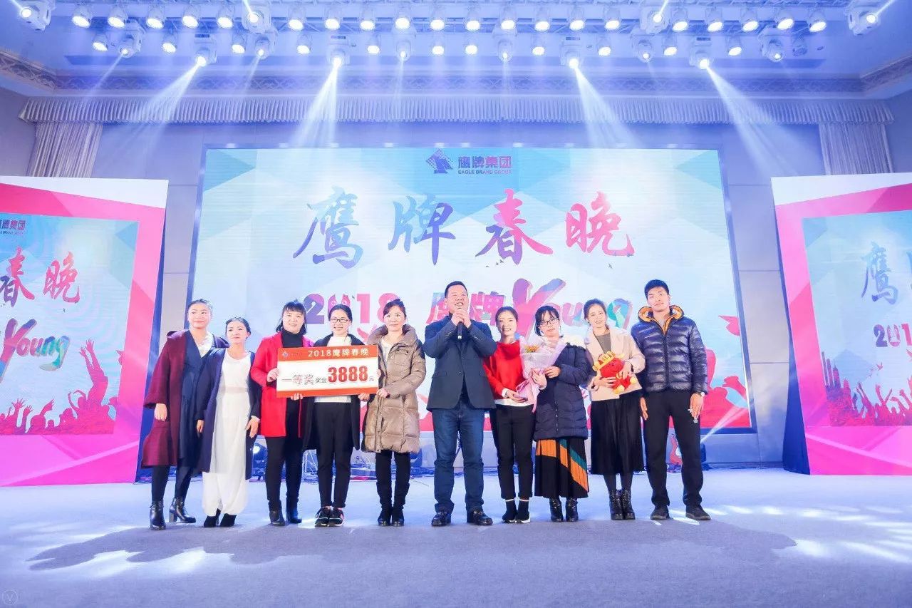 至此,2018鷹牌新年晚會圓滿結束。在這個喜慶的夜晚、熱鬧的鷹牌家庭聚會上,風華正茂的鷹牌人拂去一年的辛勤汗水,暢想美好的事業前程,共同立志續寫屬于未來的榮譽與輝煌!