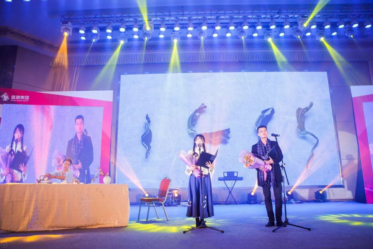 高顏主持人為我們拉開了2018新年晚會的序幕,鷹牌集團總裁林偉、集團副總裁陳賢偉攜一眾領導出席本次晚會。