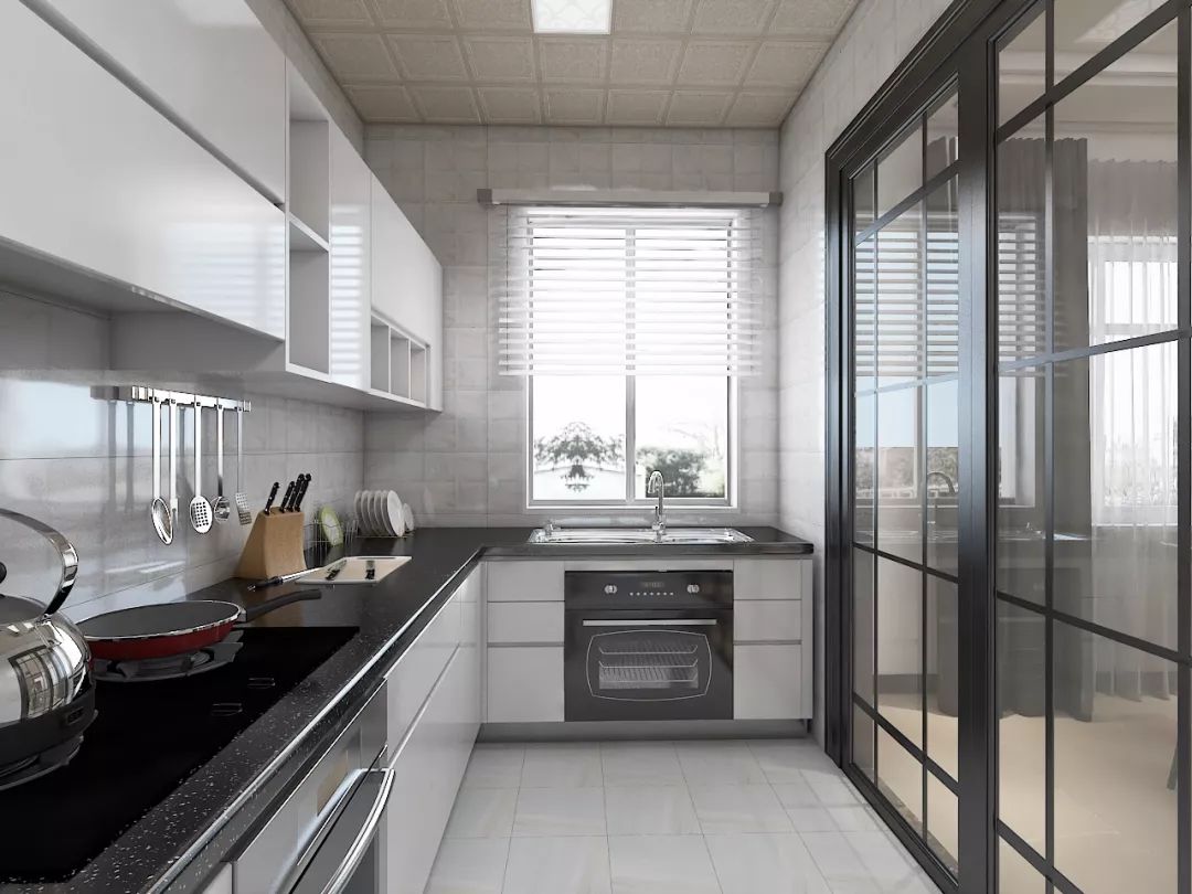 廚房的空間不大,卻具備齊全而合理的功能分區,設計師以色彩搭配出經久不變的黑白時尚,廚具、電器的恰當擺放讓烹飪更加得心應手!