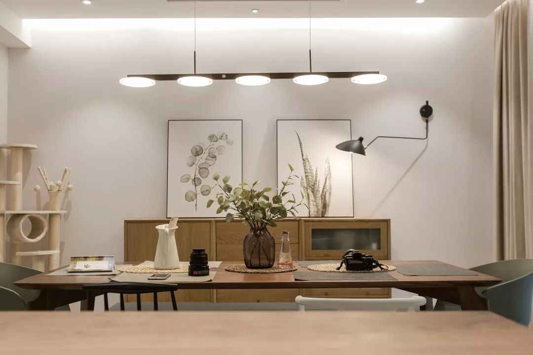 簡直不敢想象這是一個真實的空間,有點北歐風格的餐桌與同款餐邊柜交相呼應,只僅僅呆在這里,就會讓人莫名的興奮,靜待主人精心烹飪的美食