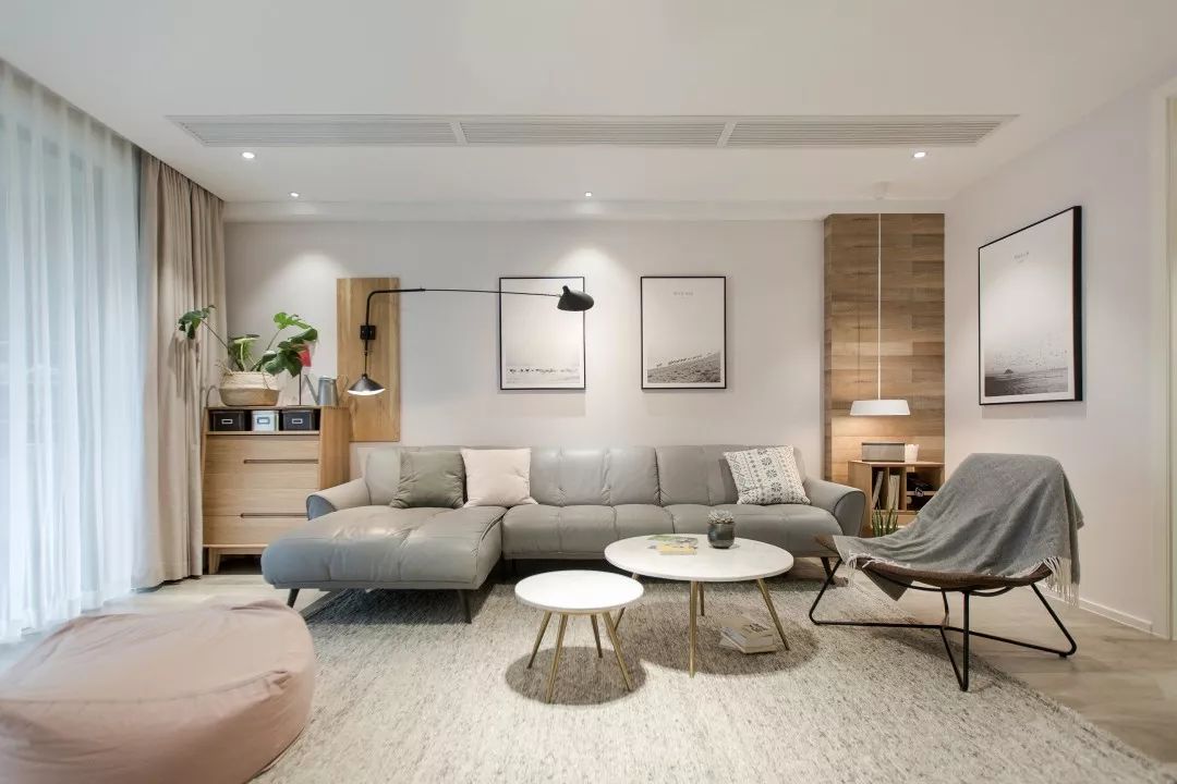 家,是我們日常除上班地點之外,呆的時間最多的場所。所以,在本案中,設計師沒有過多運用裝飾性物品,在整體色彩運用中以白色、原木色為主,霧霾藍、淡粉等顏色為輔,為業主打造出一個溫馨簡約的家居場所