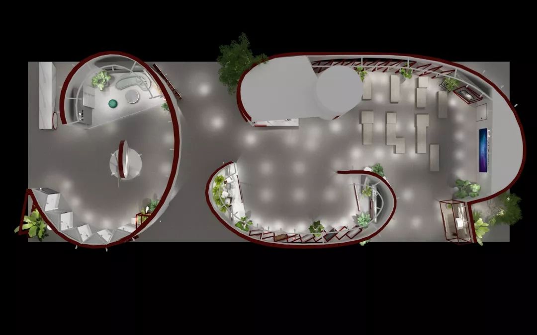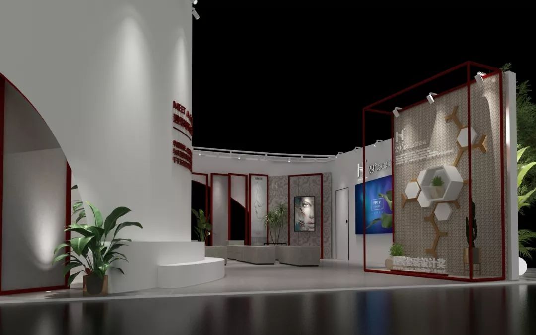 >>本次展館,華鵬以“柔”為設(shè)計(jì)主旨,從品牌理念出發(fā),結(jié)合華鵬主題紅色,弧形結(jié)構(gòu)將空間很好的劃分為三大展區(qū),看似錯(cuò)亂的空間布局中,存在著許多創(chuàng)意妙想,每一個(gè)弧形的結(jié)構(gòu)更好地銜接著每個(gè)展區(qū),其產(chǎn)生的視覺錯(cuò)位,如夢(mèng)如幻。
