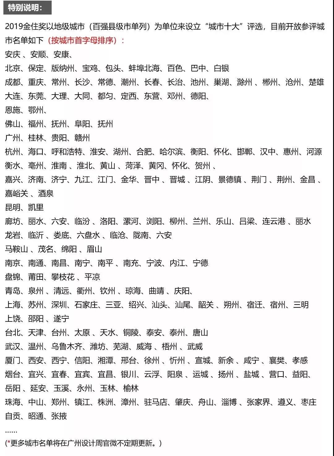 (*以城市為單位,參評設(shè)計(jì)公司須至少有一位以上執(zhí)業(yè)設(shè)計(jì)師入選金住獎城市十大以上榮譽(yù),按每個城市不超過3家/年評出。)