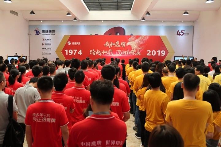 8:30分,鷹牌45周年司慶活動(dòng)正式開始!鷹牌人齊聚總部,唱響《鷹牌人之歌》。“鷹牌人征途上,鷹牌夢更輝煌”,唱出鷹牌人的激情和夢想。