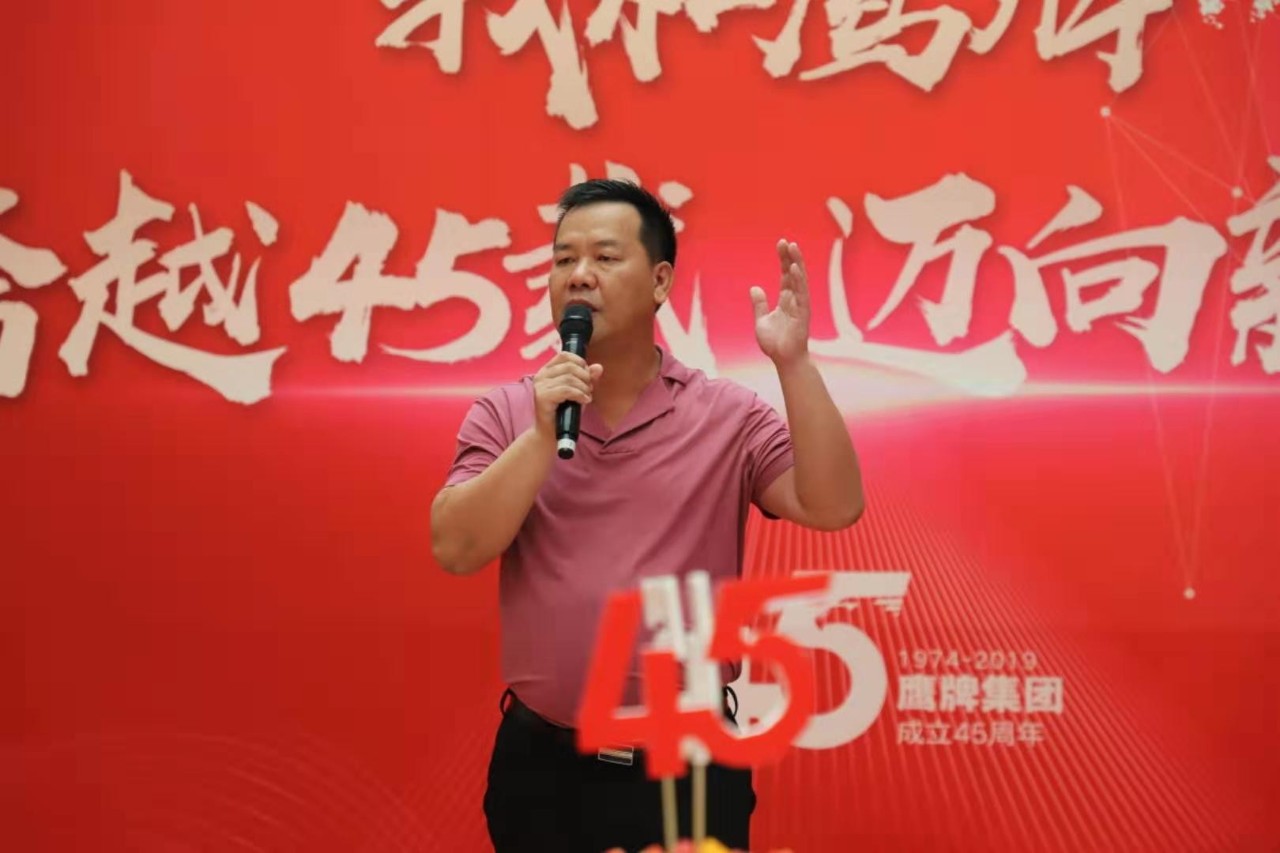 集團(tuán)總裁林偉先生在慶典上致辭,他表示,鷹牌走過45年十分不容易,很多人為鷹牌奉獻(xiàn)了青春,很多父子兩代人追隨鷹牌,許多人給予鷹牌幫助,讓他成長發(fā)展。為此,他代表鷹牌集團(tuán)向全球合作伙伴、鷹牌員工和社會各界表達(dá)了感謝。未來,希望鷹牌人能以更多的責(zé)任和擔(dān)當(dāng),為百年鷹牌的目標(biāo),為鷹牌“世界品牌、行業(yè)標(biāo)桿”的愿景、為鷹牌“傳承建陶文明,讓生活更美好”的使命而努力奮斗。