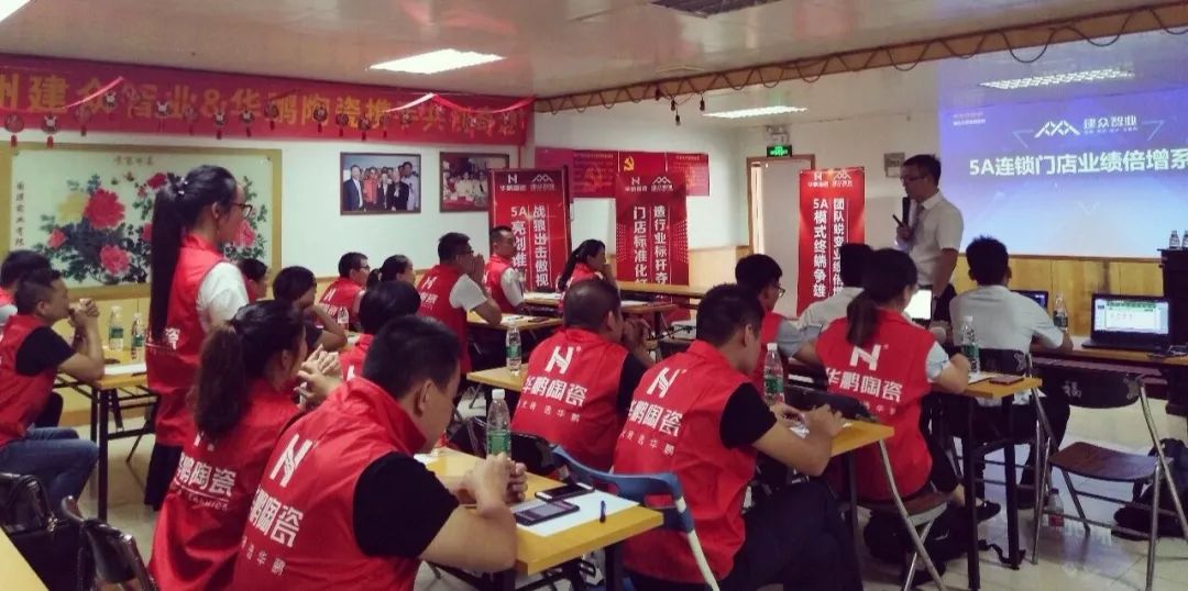 9月17日,5A項目在深圳啟動,華鵬陶瓷深圳店店長、導購、門店經理、業務員近20人參加了5A項目啟動會。同期,建眾導師團隊為華鵬深圳經銷團隊帶來了“5A門店業績倍增系統”的課程。