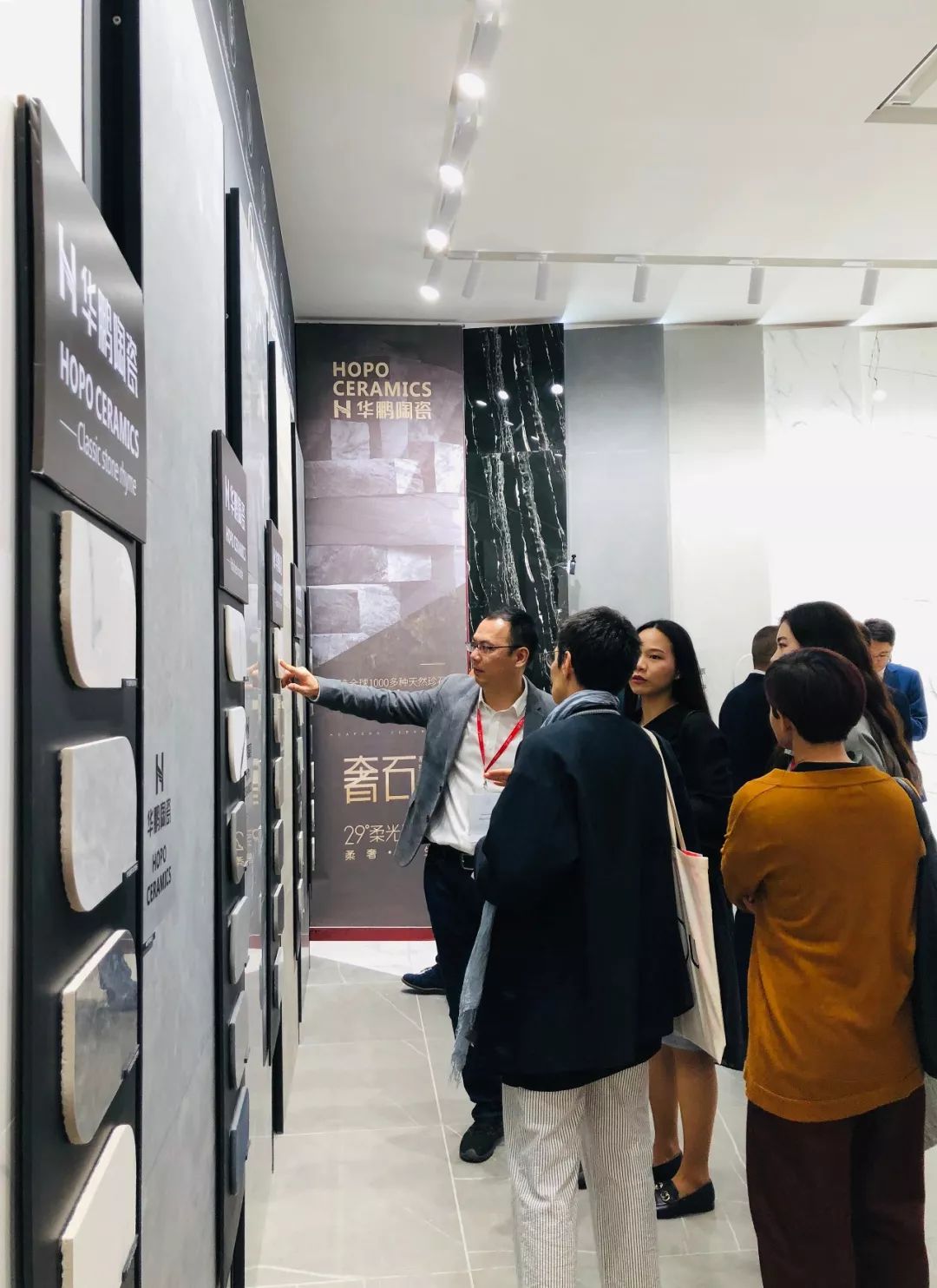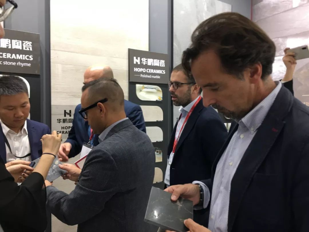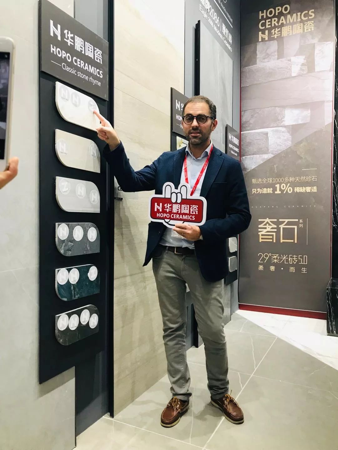 華鵬陶瓷吸引了眾多國際客商關注,米蘭3家知名設計機構更是到訪華鵬展位,一起探討2019年博洛尼亞展展會趨勢。華鵬柔光產品引發設計師關于柔光產品趨勢大討論,預測高端柔光產品會成為未來瓷磚的趨勢與風向標。