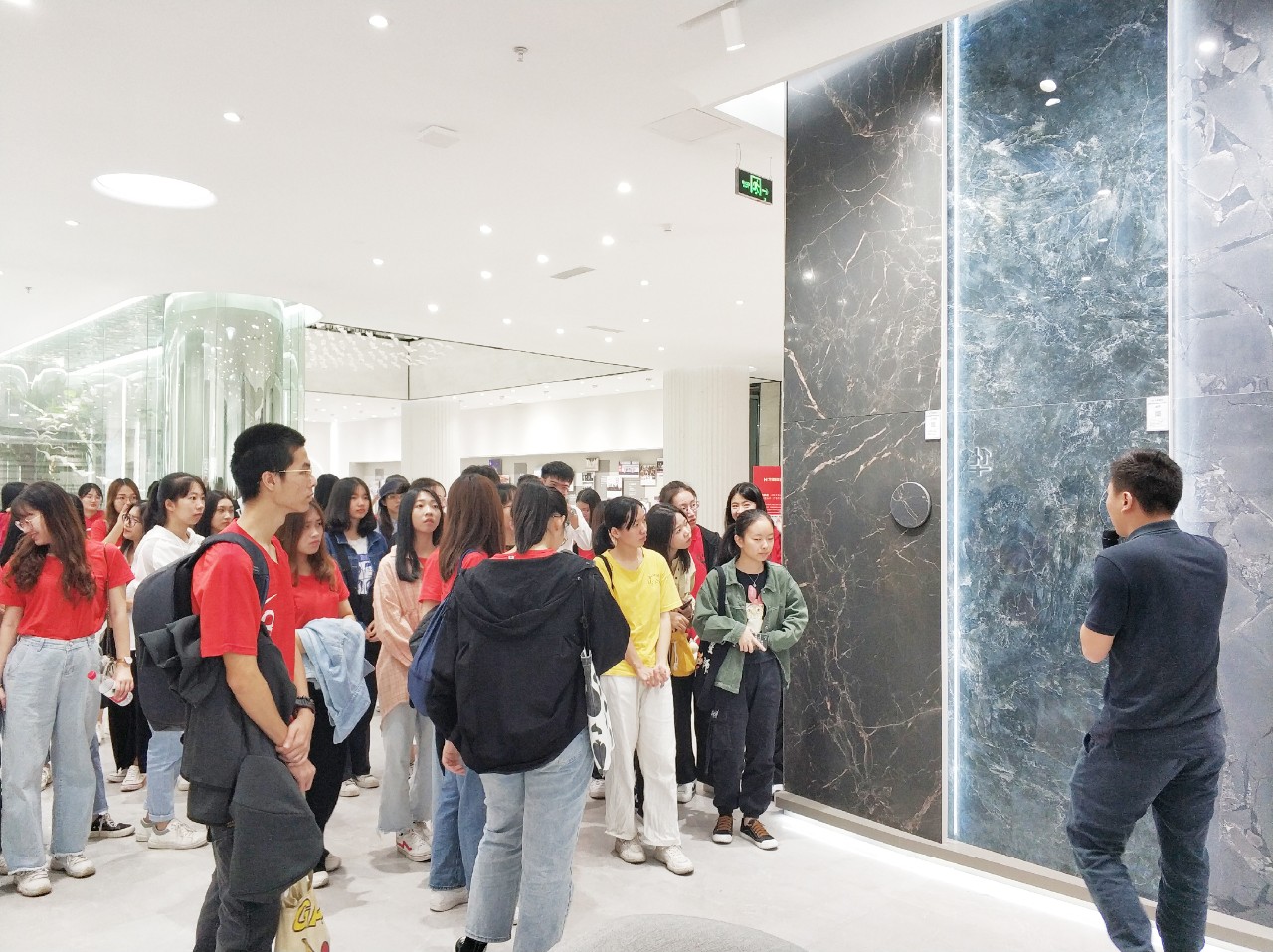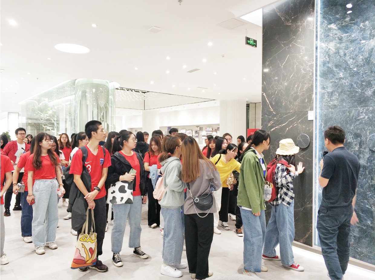 上午10:30,廣東職業技術學院師生走進華鵬,華鵬陶瓷營銷中心銷售經理劉文為師生們講解了華鵬全新升級的展廳&柔光特色產品,及華鵬陶瓷年輕活力的企業文化。
