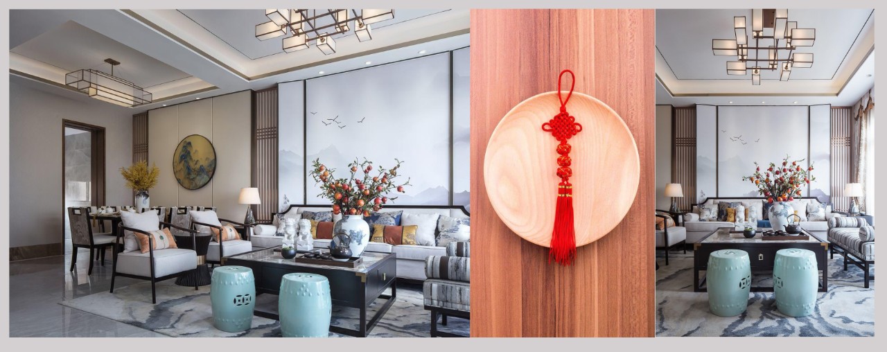 根據古典家具新中式的格調做一個融合,選取茶具和書籍,把這些更加生活情調的元素添加進去。
