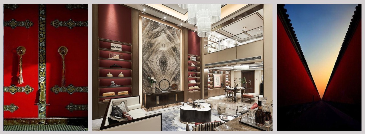 根據我對本地商人的了解,做了一些造型、顏色和空間的提煉。選用了非常豐盈的中國紅,燈籠的寓意也非常好,象征著生意興隆、恭喜發財,這些素材為整個設計定了一個大致的方向和基調。