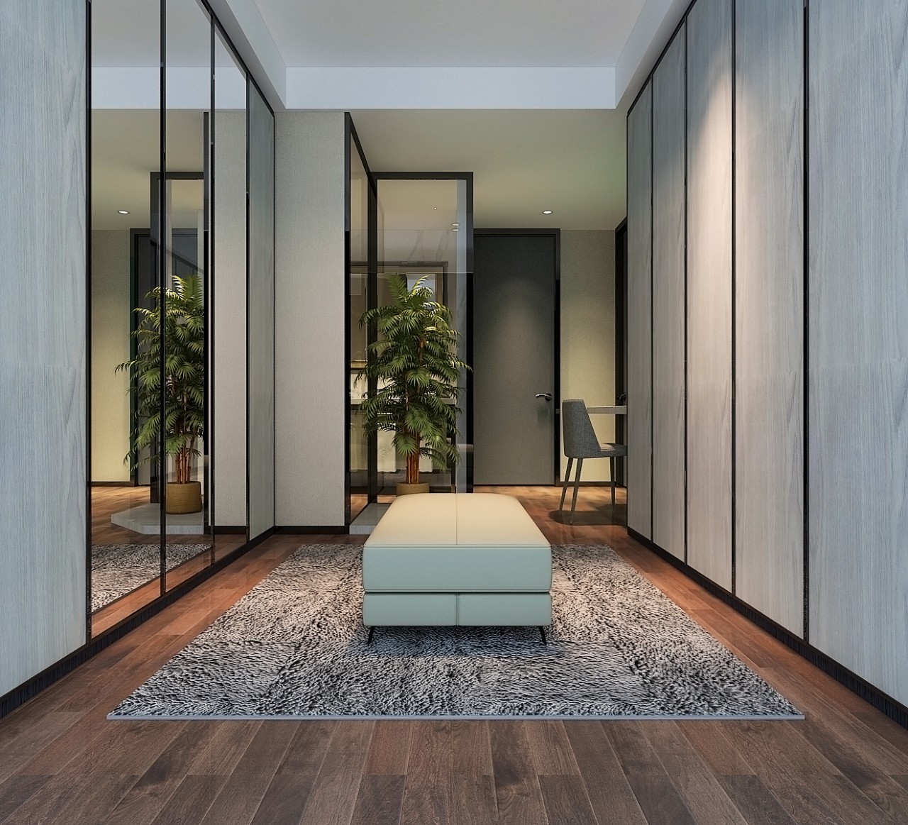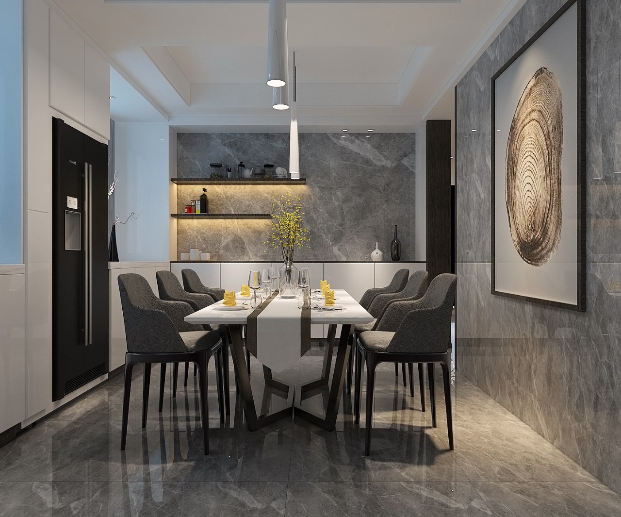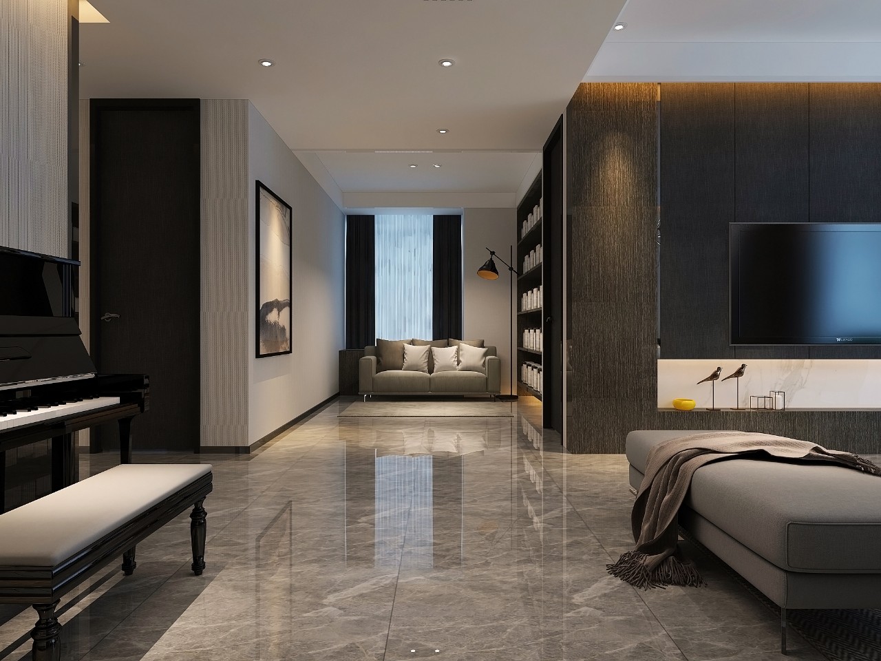 方案在顏色上以黑白灰作為主色調,除去多余的裝飾性質,打造自然,宜居的家居環境。