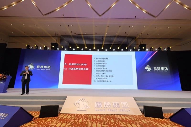 大會上,林總提出10項舉措全方位謀劃鷹牌的短中長期的發展,涉及生產、研發、營銷、供應鏈、人才培養與考核、財務運籌、企業文化體系等等。