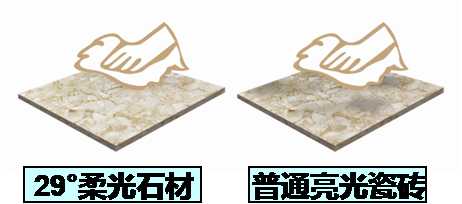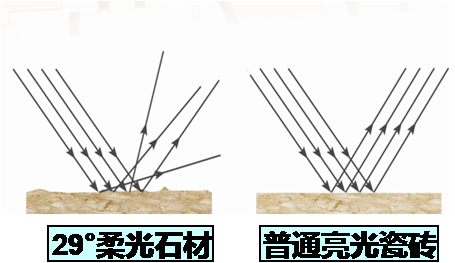 29度柔光石材顧名思義就是照射到瓷磚表面后形成29度光線漫反射。經(jīng)科學(xué)實(shí)驗(yàn)驗(yàn)證,29度光漫反射最讓人覺得舒服的光線角度,故29度柔光石材與其它拋光類瓷磚的區(qū)別就在于此,她不但汲取了兩者之長,采用“2000目DP技術(shù)”精確的控制了光線的漫反射的角度,這又是一個(gè)區(qū)別于其他品牌類柔光瓷磚行業(yè)的一個(gè)技術(shù)亮點(diǎn)。