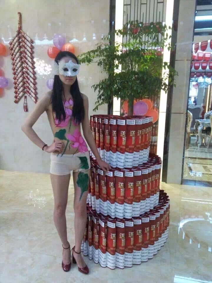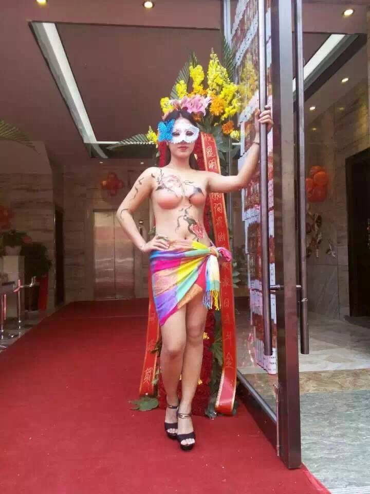 人體彩繪禮儀小姐喜迎八方客。
