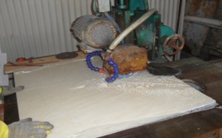 5、對于邊長800mm或者以上規(guī)格,異形加工之前,務(wù)必保證板下邊均勻鋪墊牢實、平穩(wěn),一定避免有一角實際懸空(那怕只有大約1mm)的情況。