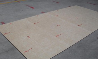 凡是深加工中在微晶石背面形成了鋸切槽溝甚至是槽溝交叉的部位,都可能在鋪貼之后使用中產(chǎn)生裂痕,故需要進(jìn)行如下特殊處理:直接在上述微晶石的背面的凹陷槽內(nèi)添實、添滿石材粘結(jié)膠(俗稱大力膠、大理石膠),達(dá)到補強的效果。同時還要在已填實的溝槽附近2~3厘米的地方涂覆一薄層石材粘結(jié)膠,以達(dá)到隔離效果。待粘結(jié)膠基本凝固即可用于正常鋪貼。
