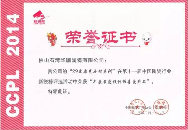 新銳產(chǎn)品的評選“百強企業(yè)”的重要指標。尤其是華鵬的29度柔光石材和一次燒微晶玉石明星產(chǎn)品,經(jīng)得起組委會專業(yè)評審團的考驗,成為百強中的標桿。