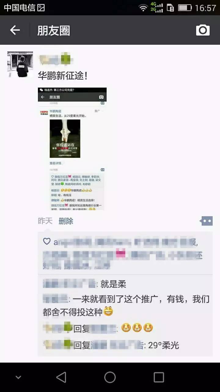 2013年,華鵬陶瓷推出29°柔光,緊接著是29°柔光二代,三代。再到2015年的“最美瓷磚設計獎”,直到到昨天的微信朋友圈廣告,無一不表露出它強大的實力,創新性思維和前沿化的營銷模式。正是因為這樣,才使得華鵬敢于做陶瓷企業第一個試水微信朋友圈的企業,才做出進行微信朋友圈推廣的決定,才有了昨天的爆炸性事件。