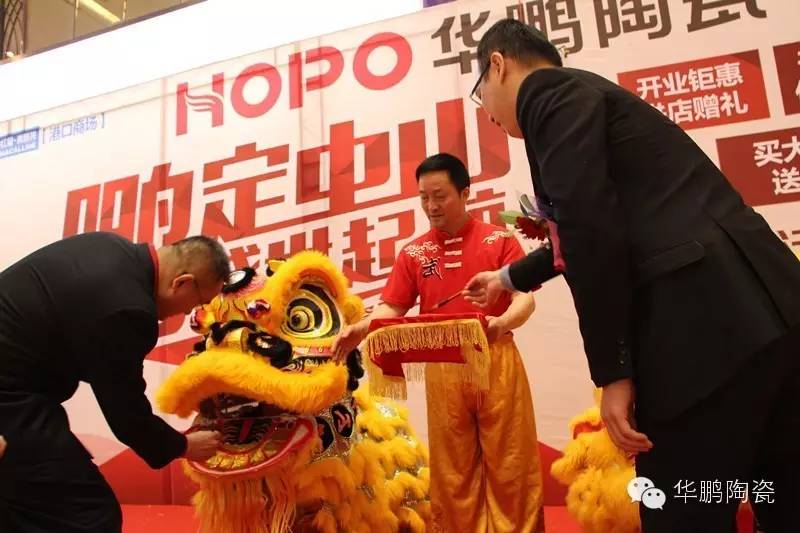 中山華鵬陶瓷總經理刁總和華鵬陶瓷姚總為舞獅點睛,贊