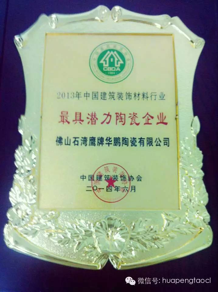 2014年6月10日至6月11日,2014首屆中國建材家居產(chǎn)業(yè)發(fā)展大會在北京順利召開,華鵬陶瓷受邀現(xiàn)場參與會議,并被評選為“2013年中國建筑裝飾材料行業(yè)最具潛力陶瓷企業(yè)”。