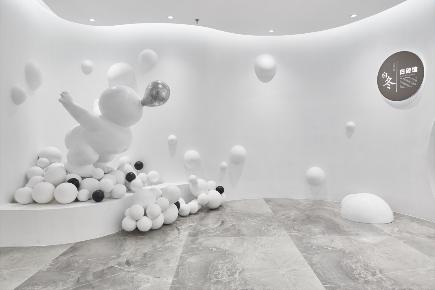 白磚館入口處的冰雪精靈,輕吐白色泡泡,營造出一片冰雪世界,已經成為網紅打卡點。