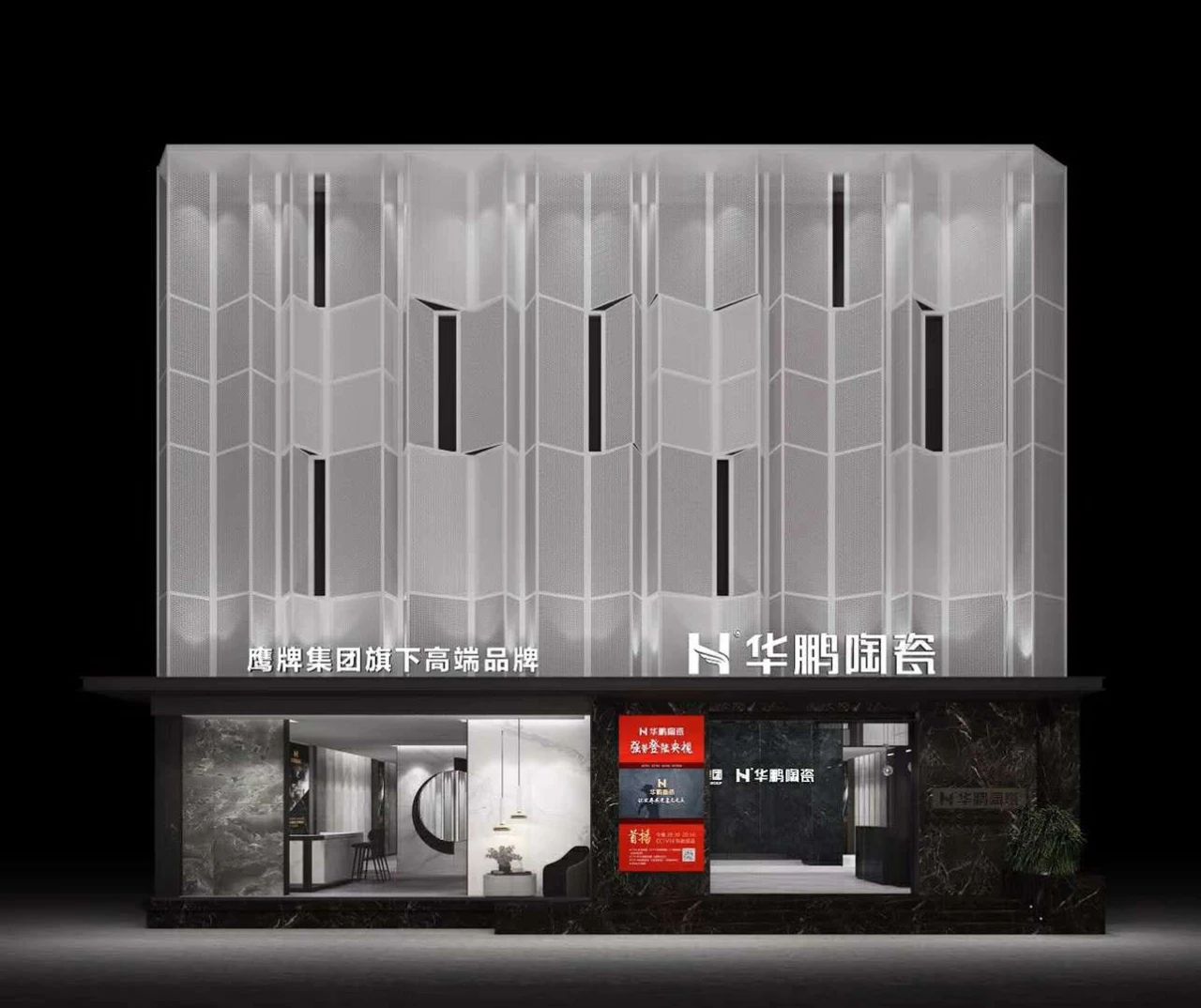 2019 年下半年,華鵬陶瓷總部展廳全面升級,在“不是設計展廳,而是讓展廳有設計感”設計理念下,華鵬全新展廳被劃分為分兩大區域:一樓形象大堂+設計師選材區和二樓“一磚一館一選材”的四大專項展館。