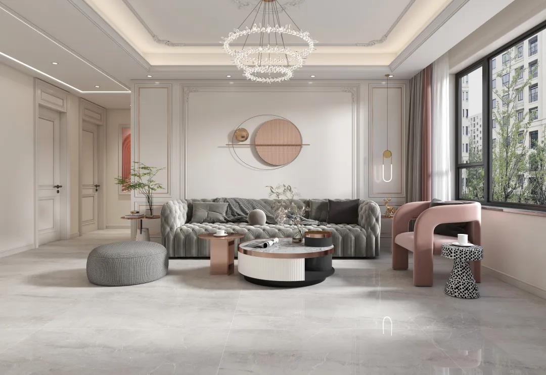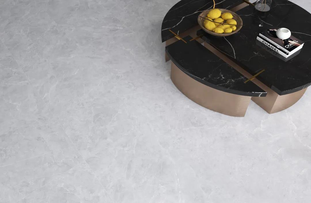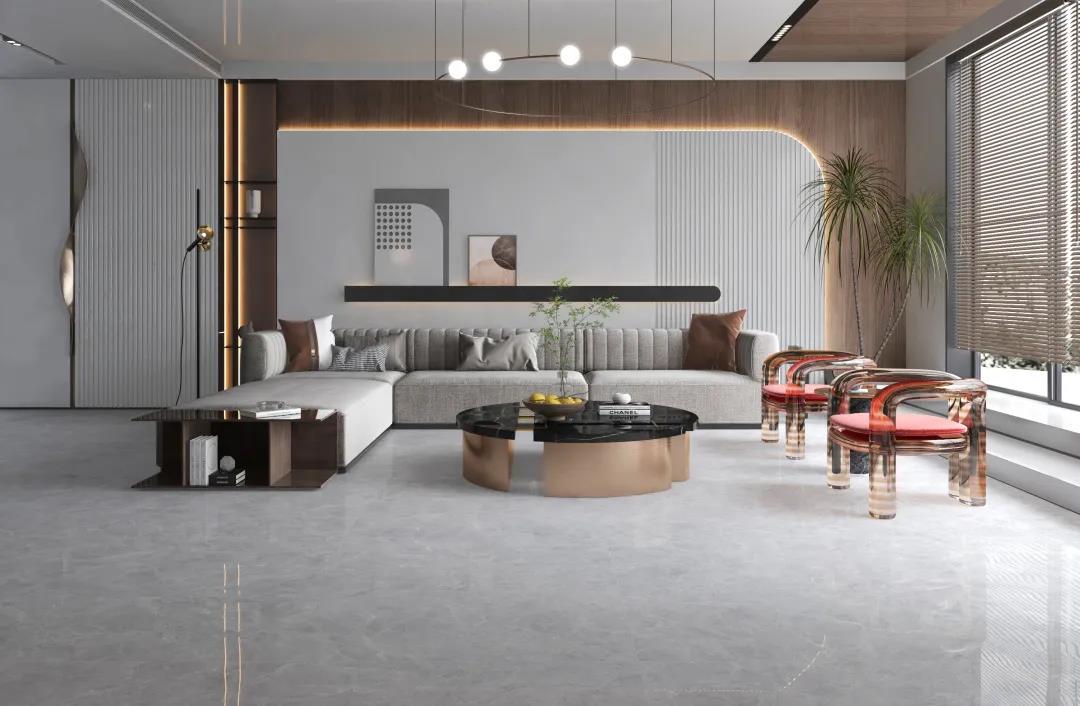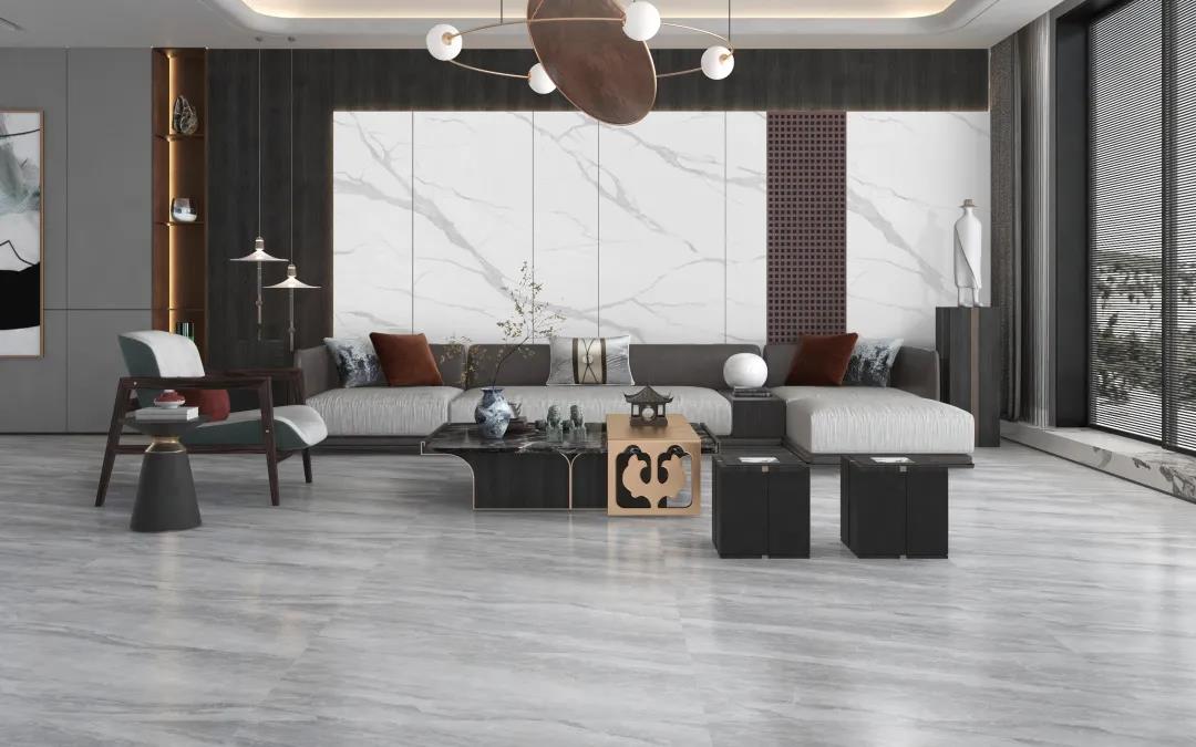 現代簡約風的地磚搭配選擇了簡潔素雅的夢幻灰,若隱若現的暗紋,宛如翻騰的云層,為簡約的家居彰顯大氣。