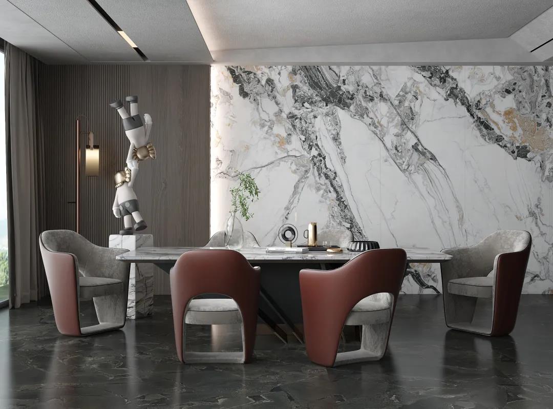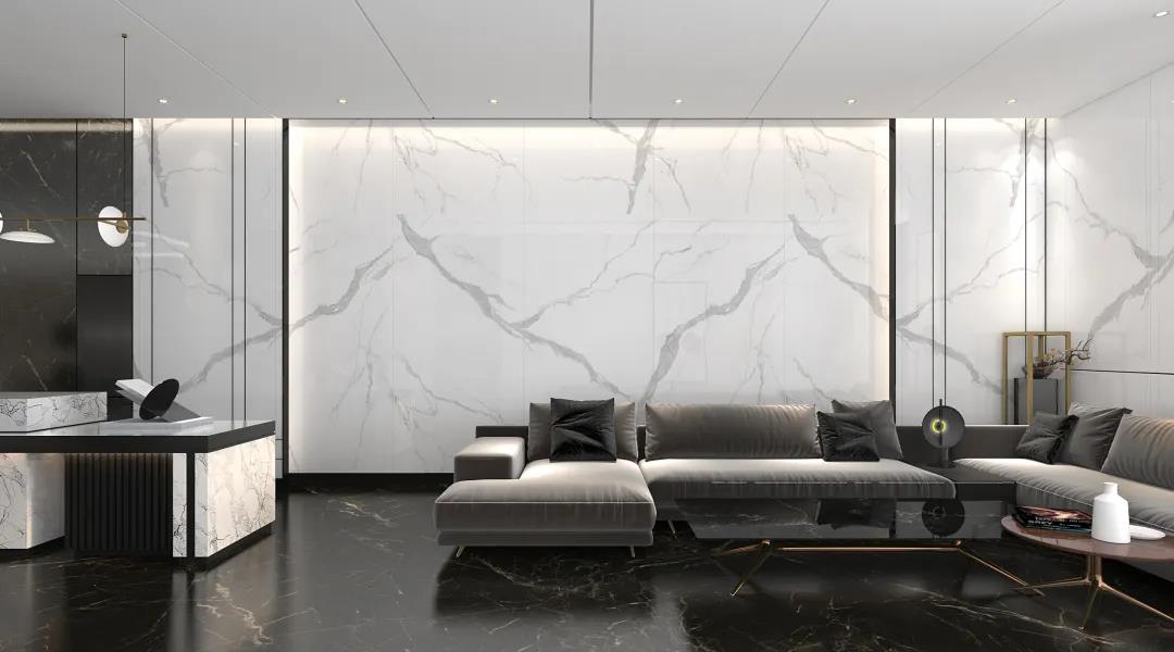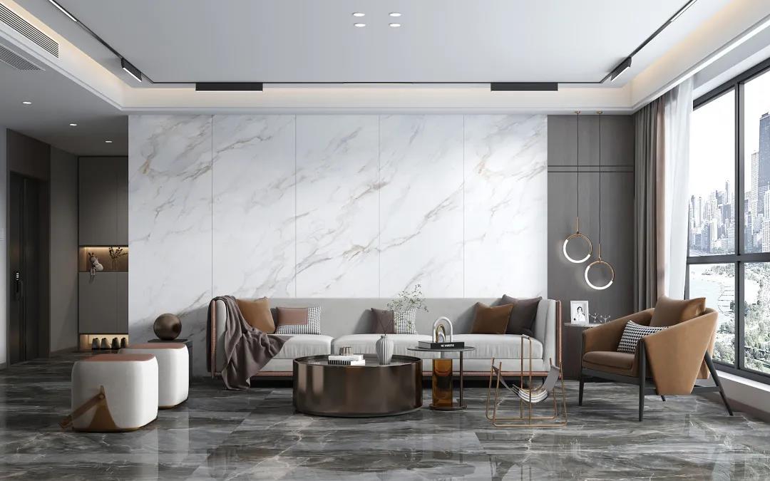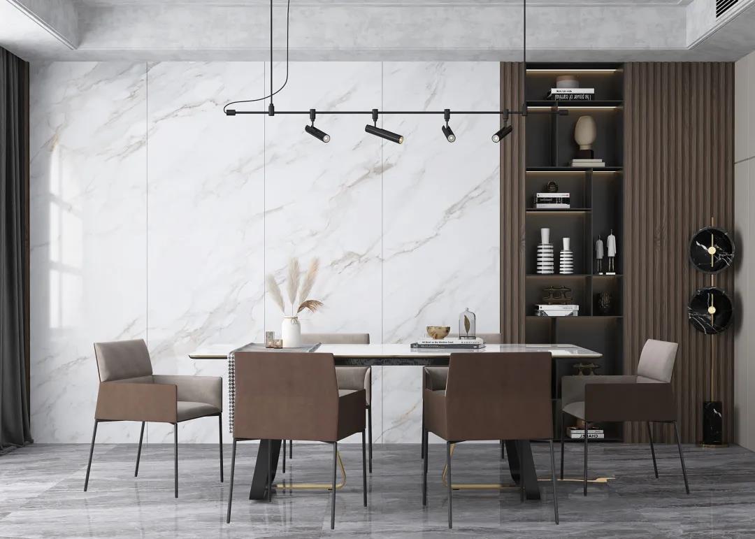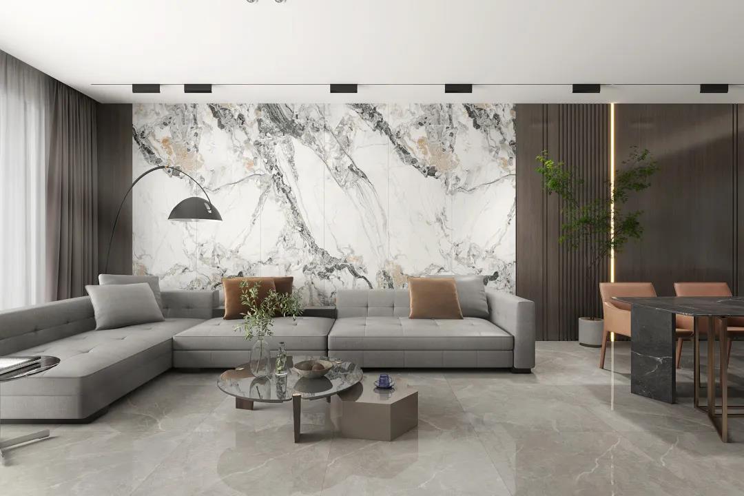 背景墻的裝飾材料種類多樣,有墻紙、硅藻泥、天然石材、皮革軟包,以及近幾年大熱的大理石瓷磚和巖板。大理石瓷磚、柔光磚和巖板加工簡(jiǎn)單、造型多樣、鋪貼簡(jiǎn)單、性價(jià)比高、后期打理方便,成為了家居背景墻的首選材料。