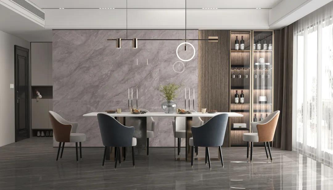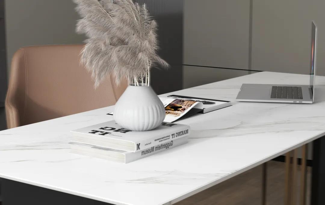 華鵬陶瓷900x1800mm規(guī)格巖板除了作為背景墻,由于其超高耐磨、無懼滲污、材料環(huán)保、柔光/亮光雙重光感、12mm厚度承重穩(wěn)妥等性能,衍生出華鵬29°柔光巖板家具,29°柔光巖板家具款式多樣可定制,滿足不同需求消費者。