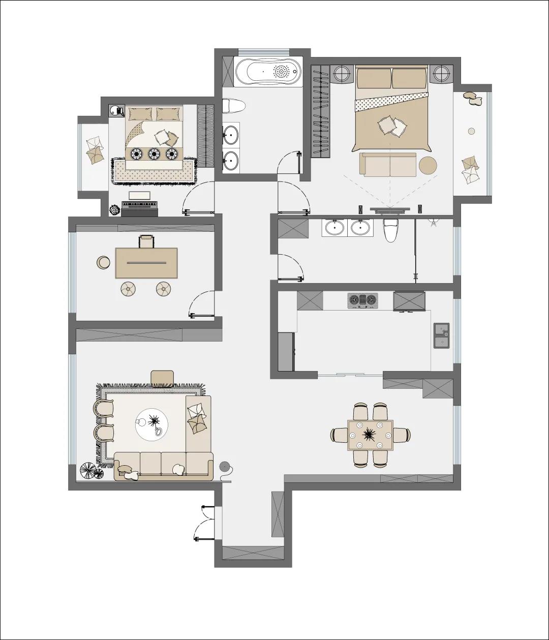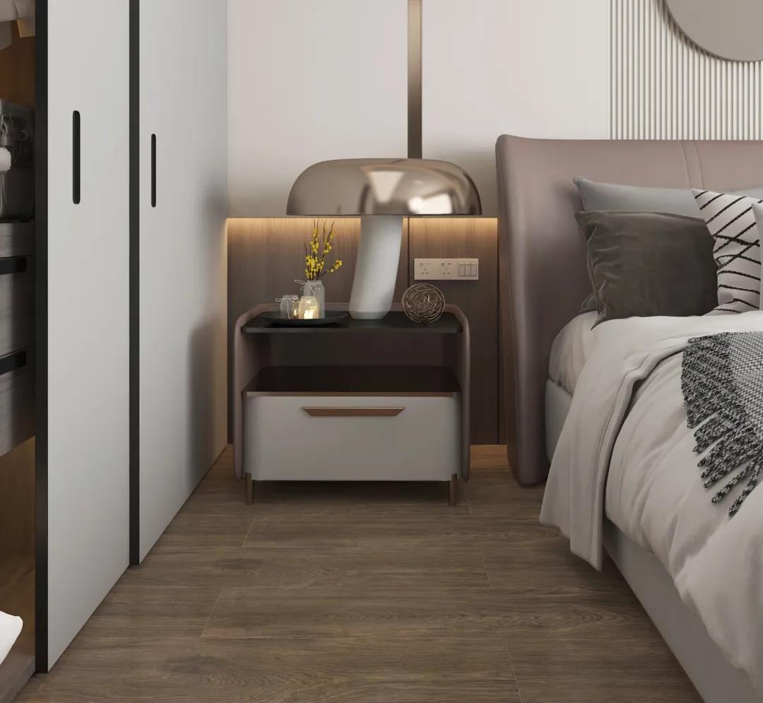 本案中以柔奢為落腳點,選用華鵬29°柔光磚打造出空間的柔,同時應(yīng)用了天安新材墻地專家的硅藻泥科技板,健康、無毒、無味能有效縮短裝修周期,居住環(huán)境更健康,是高質(zhì)要求人群的裝修首選。