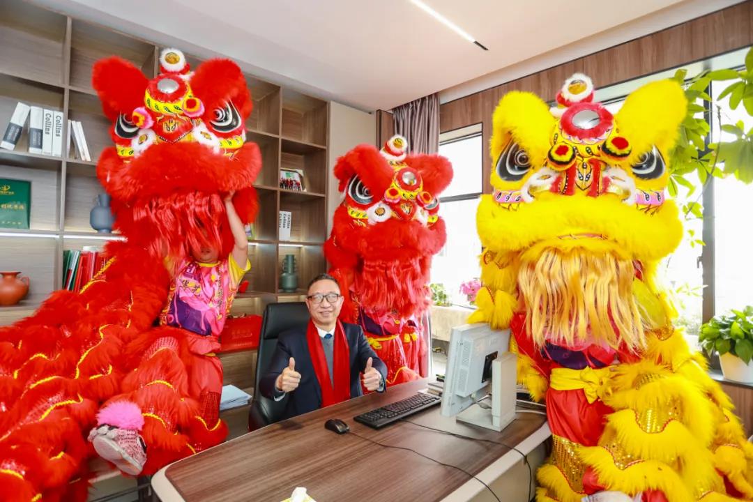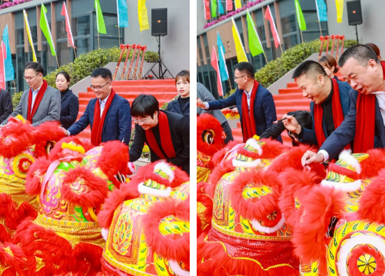 接著,所有來賓和鷹牌中高管理層,為醒獅點睛開光,寓意繁榮富貴,生意興隆,雄獅蘇醒,財源滾滾!