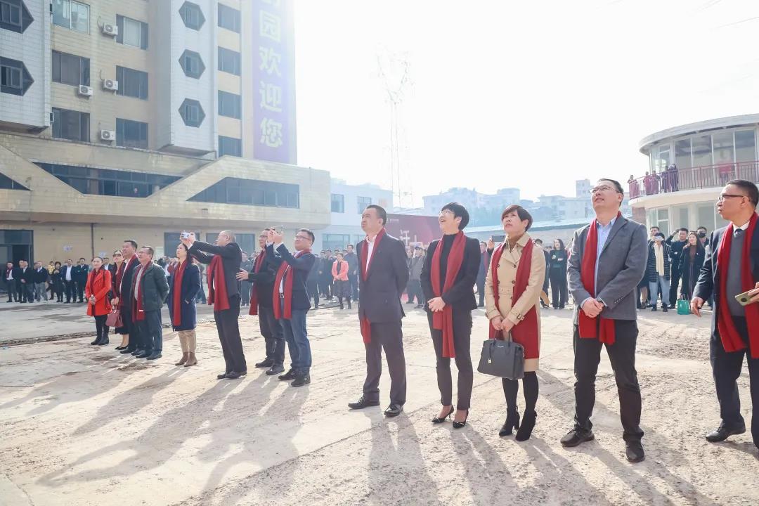 點睛禮成,所有來賓和鷹牌中高管理層為總部辦公樓大樓的開幕進行剪彩。