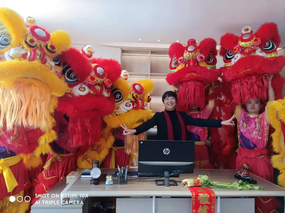 隨后,在鞭炮聲中,大家欣賞精彩的舞獅表演。