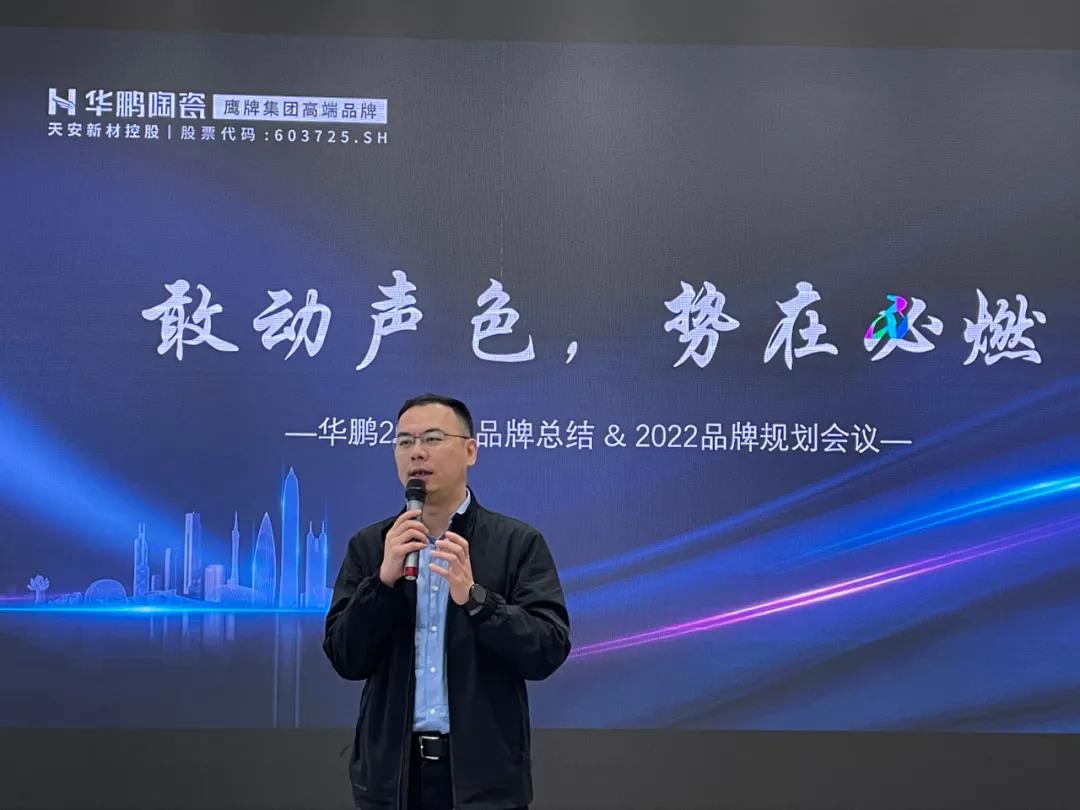 陶瓷十大品牌華鵬陶瓷常務副總經理王瓏對各部門取得的成績給予了充分肯定,并對2022戰略指標進行規劃。一切圍繞“業績”展開,通過對年度任務分解,形成量化指標,上下齊心,共同突破。以企業文化“開放  坦誠  公平  務實  高效  利他”為宣導,給予自己不斷成長的動力,只有在“目標、思想、行動”上都保持統一,才能釋放更大的能量,沖刺更高的目標。