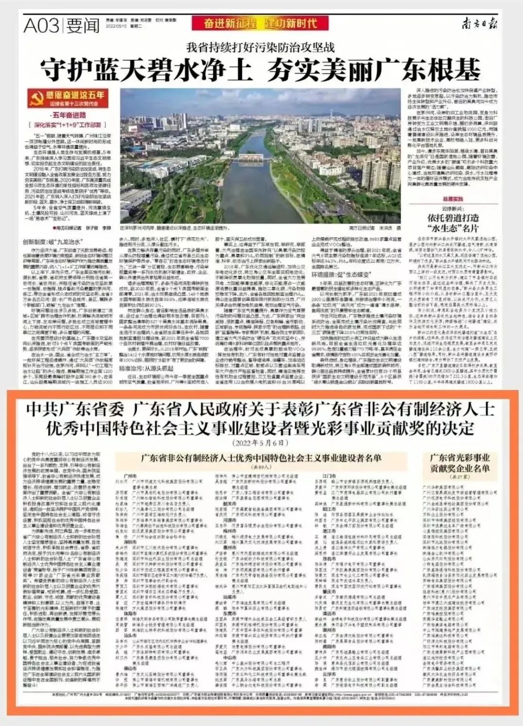 董事長吳啟超榮獲“廣東省非公有制經濟人士優秀中國特色社會主義事業建設者”稱號