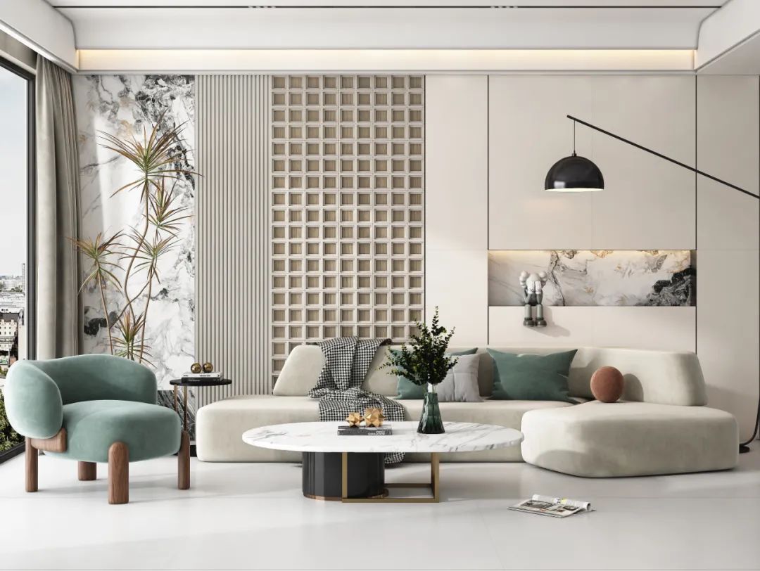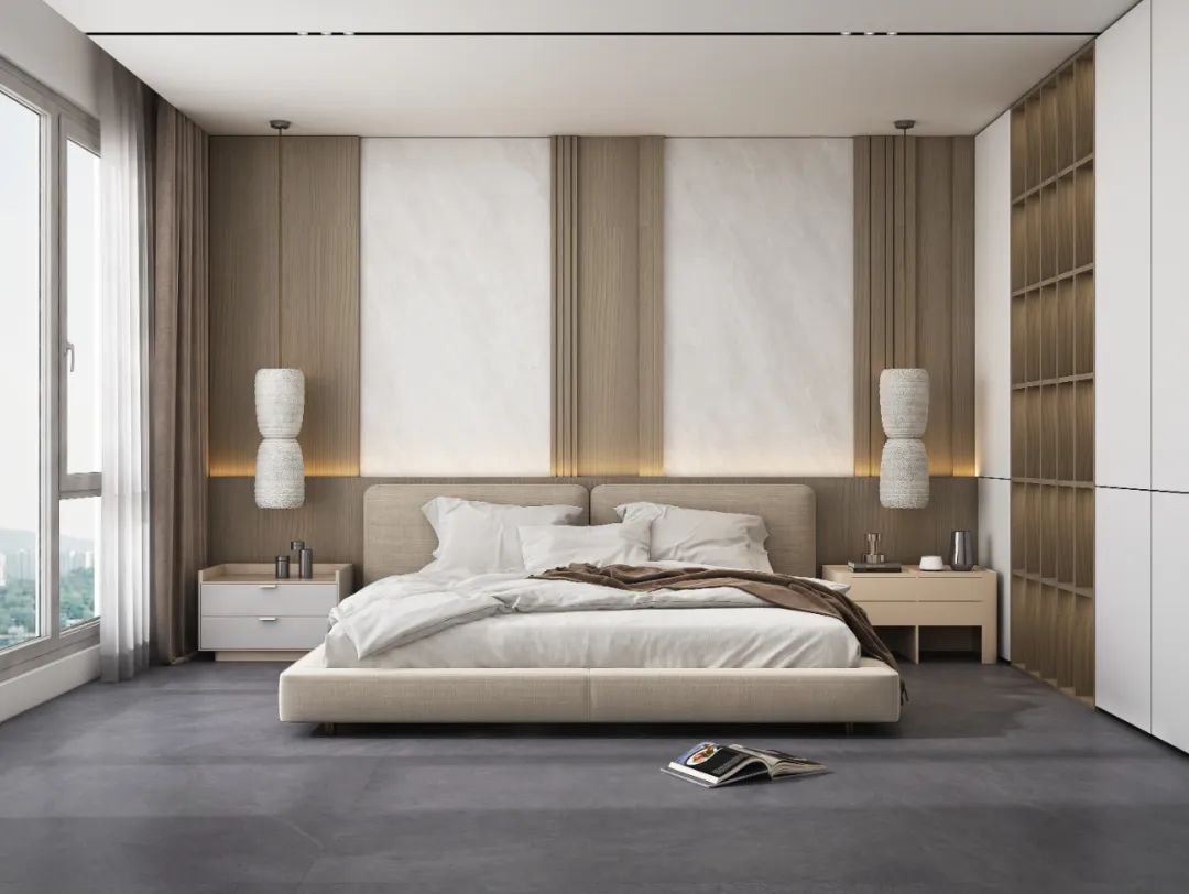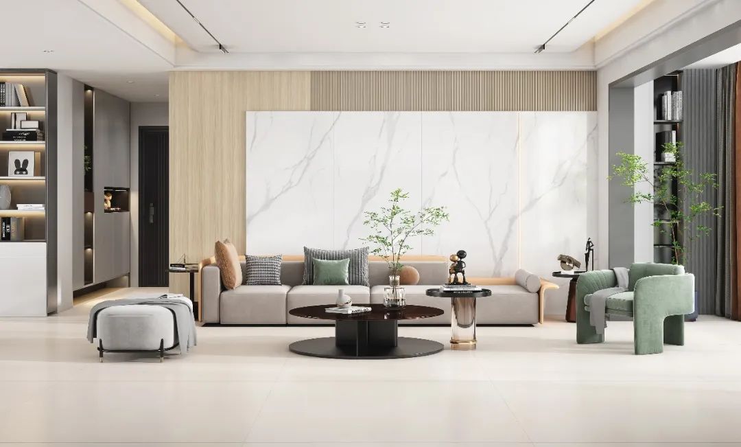 以多重智控柔拋技術層層打磨,磚面極致細膩,搭配低飽和度的素色調的柔美與高級感,完美還原微水泥的原生質感。目之所及,明暗變幻、色澤深淺,盡是舒適;手之所及,溫潤親膚、細膩絲滑,質感十足。