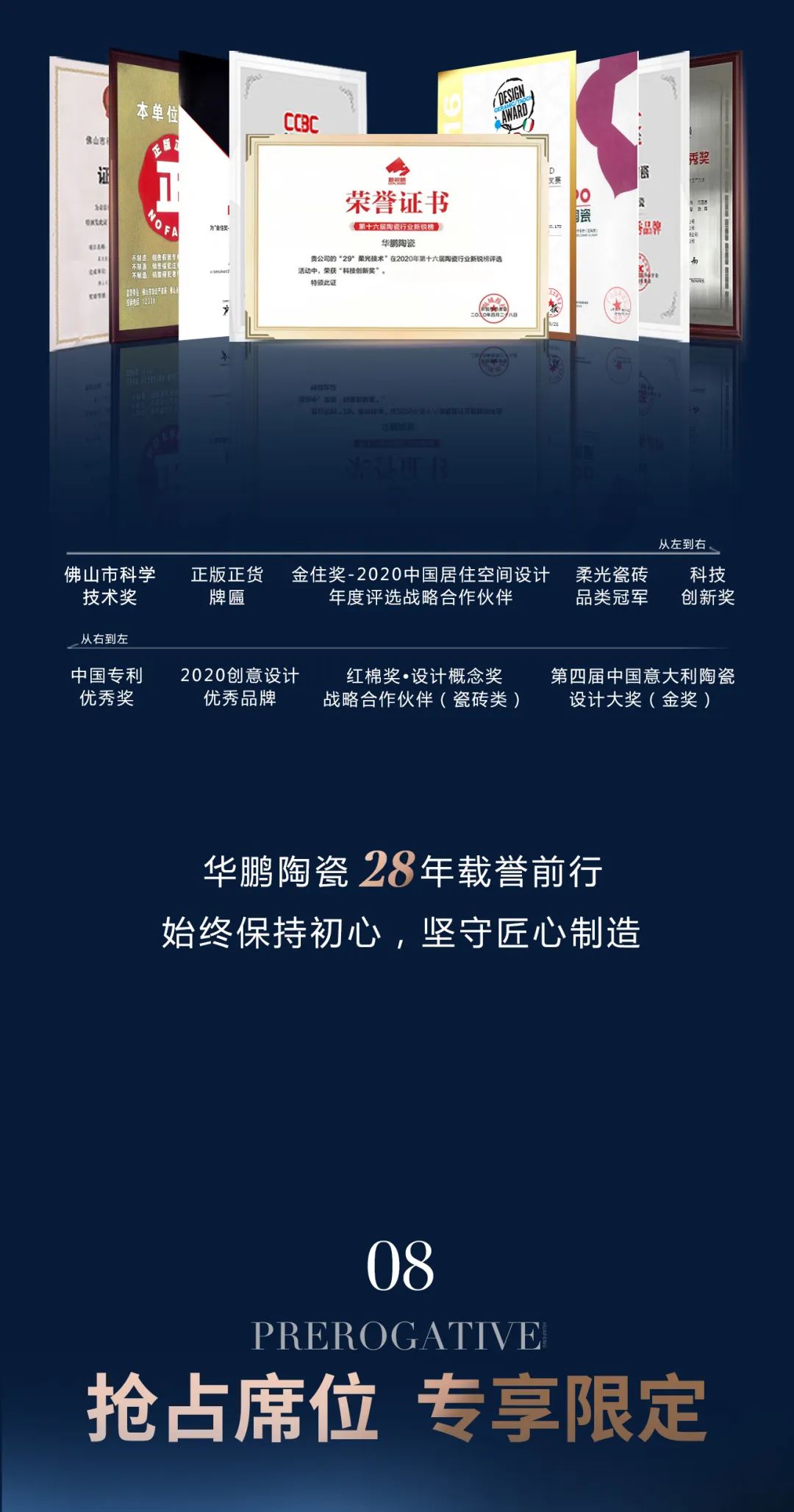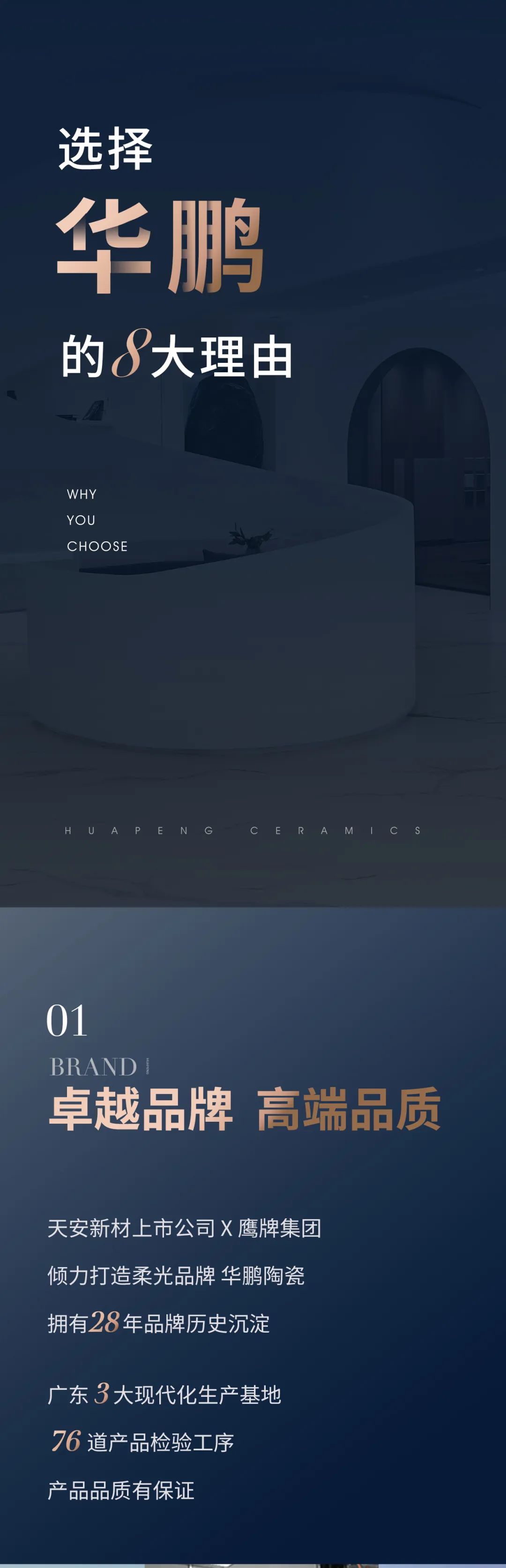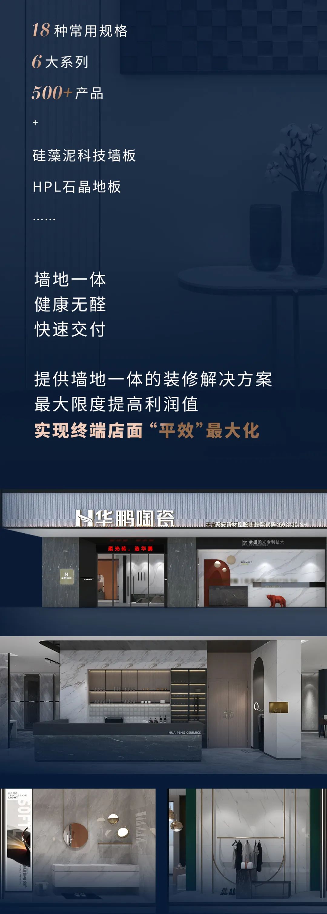 華鵬陶瓷厚積薄發,聚集了92位行業頂尖技術專家的華鵬研發中心,憑借著強大的研發實力,推出年銷量沖刺億元的重量級新品行業首創29柔光石材系列,實現國際領先的三大標桿成果: