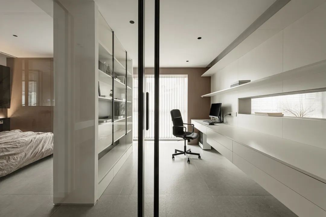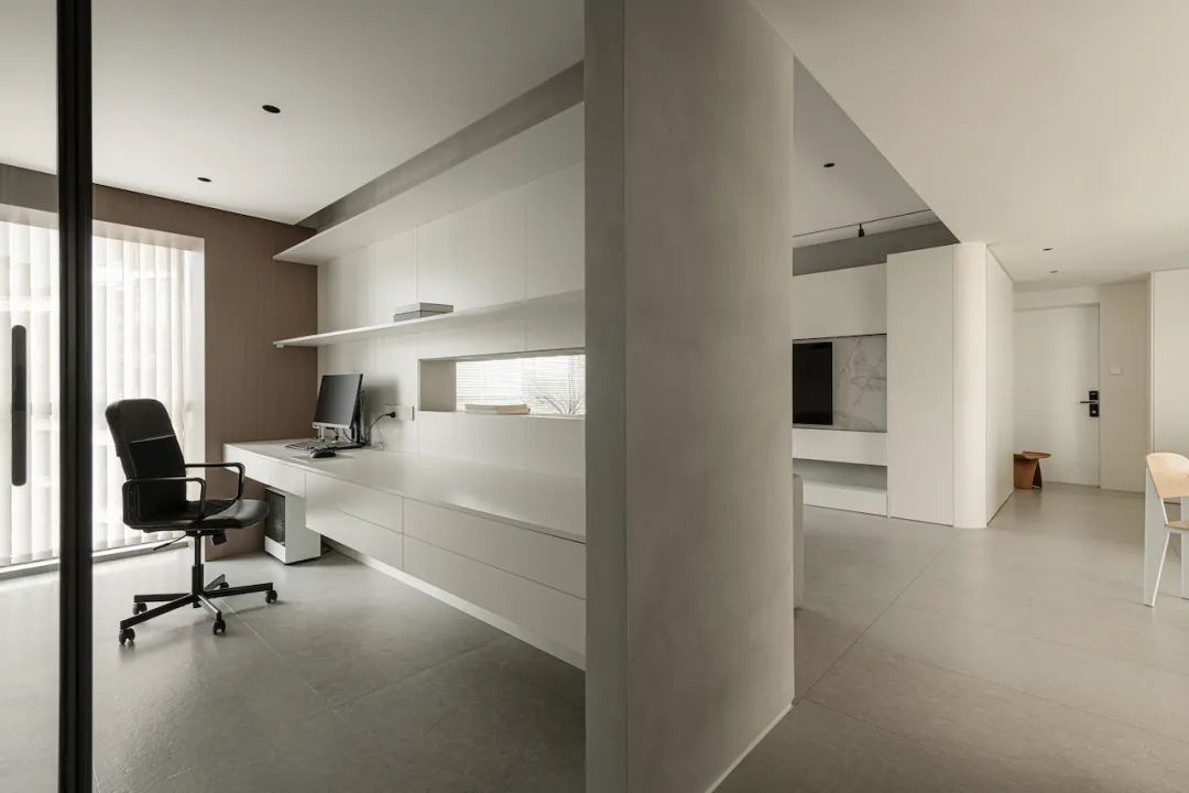 閱讀區設計比較休閑,可以讓人悠閑的品味閱讀,去感受生活的閑適和幸福,一體化的書桌體現著屋主人的高品位,或是打開電腦辦公,或是閑逸讀書,都是簡單生活的美好。