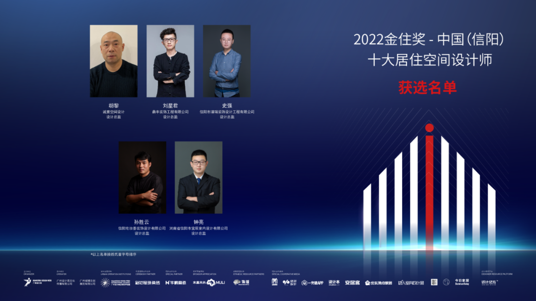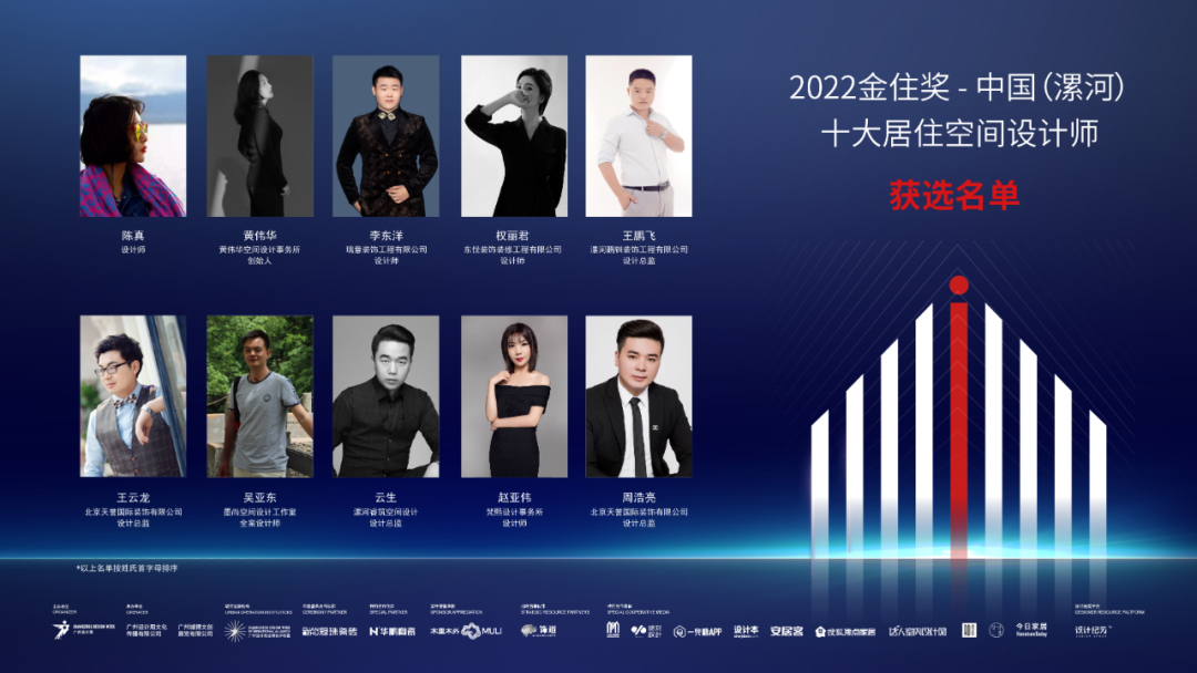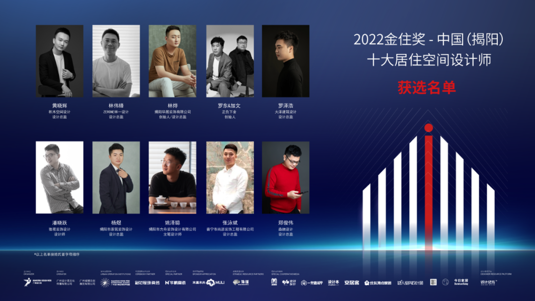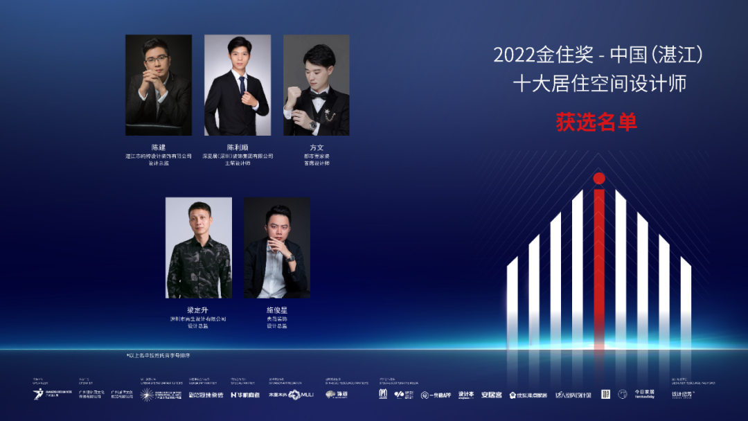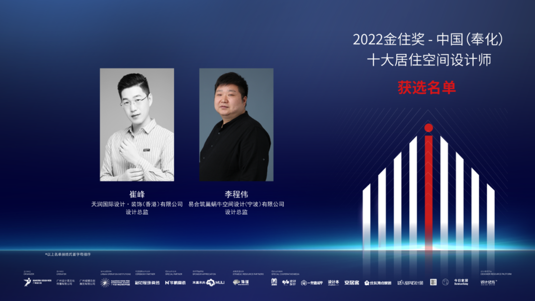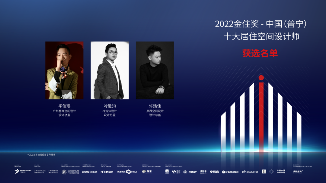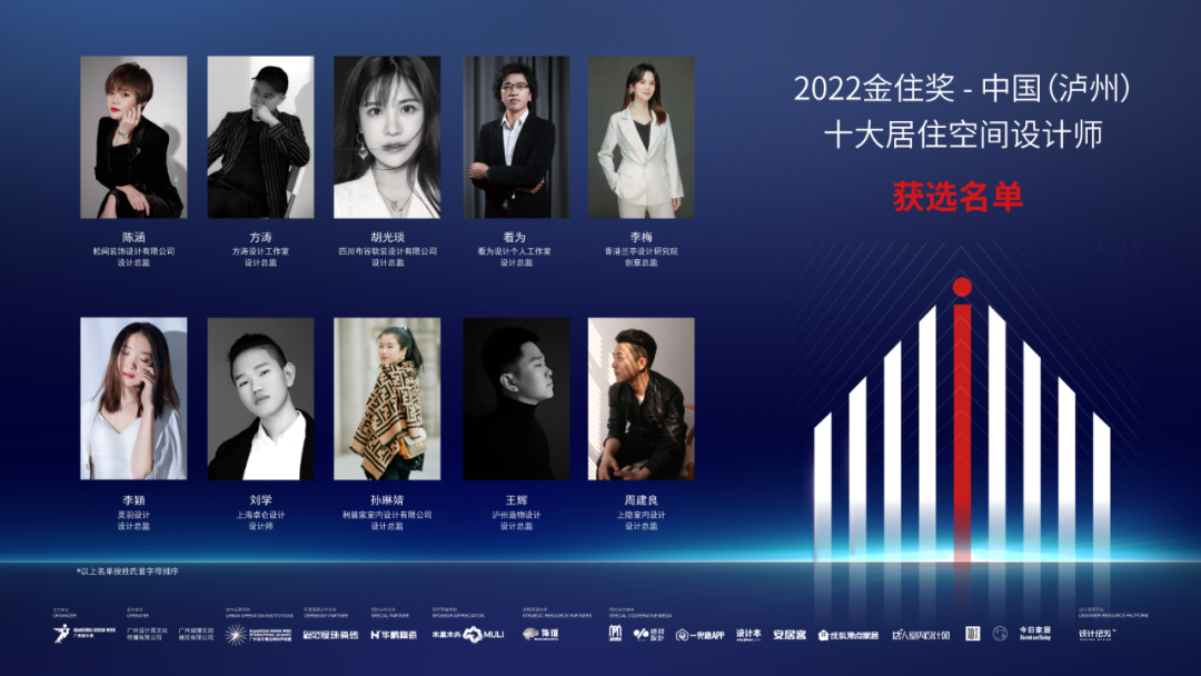 恭喜以上優秀設計師榮獲“2022金住獎-中國(城市)十大居住空間設計師”,并獲得最終角逐“2022金住獎-中國百杰居住空間設計師”的資格!同時各位獲獎設計師也將參加于廣州設計周同期舉辦的『2022金住獎-中國(城市)十大居住空間設計師』頒獎典禮!“2022金住獎-中國(城市)十大居住空間設計師”獲選名單將陸續發布,敬請期待!