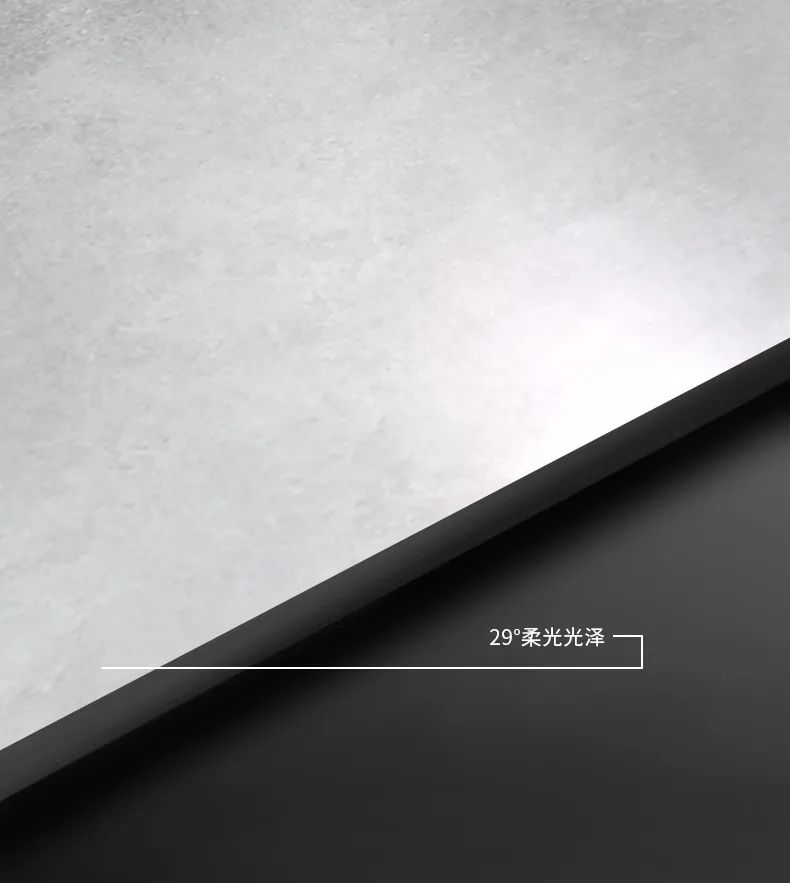 經過10年的產品聚焦,在研發、設計、生產與應用上不斷精進。從平面柔光跨越至立體柔光,同時突破傳統工藝局限,29°柔光目前已更新至第5代新品。隨著素色風潮的崛起,“29°柔光技術”與微水泥產品設計相結合,重磅推出以750x1500mm、600x1200兩大規格為主的29°柔光微水泥系列,實現了產品在不同角度的光度投視下的面感、質感和觸感的多重提升。