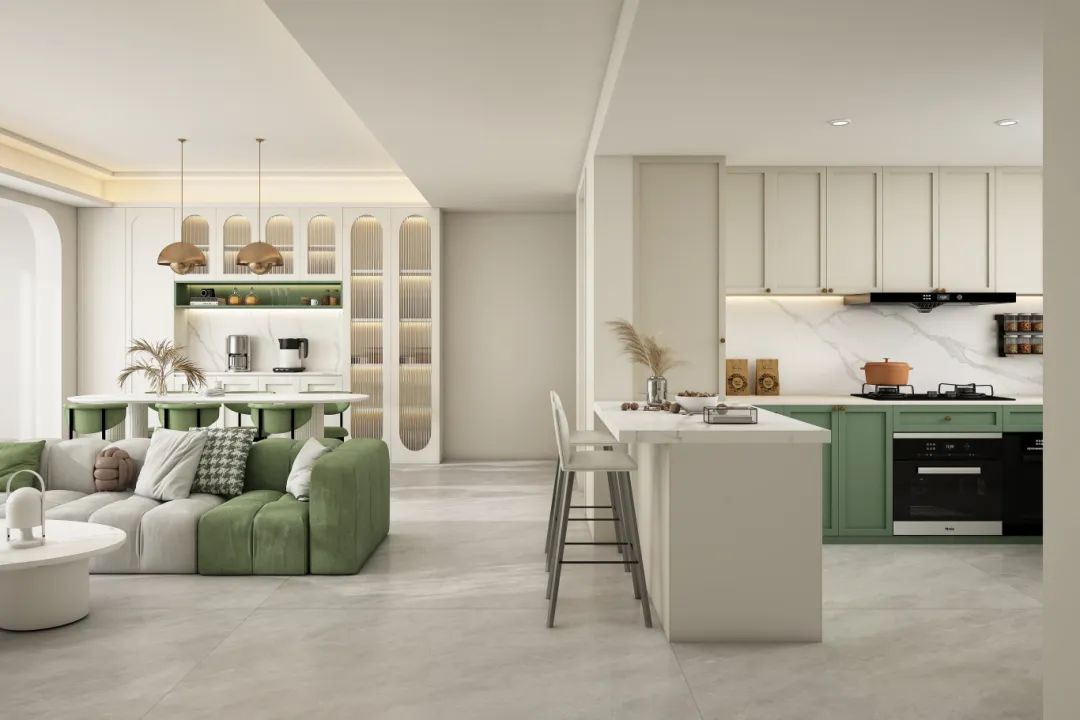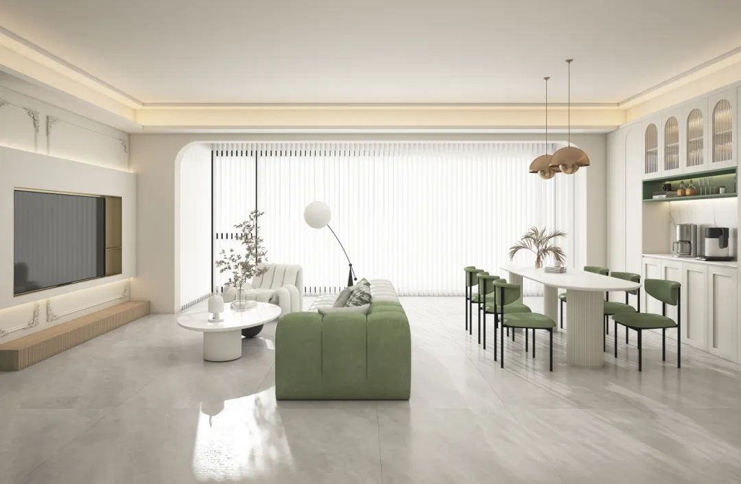 法式浪漫家居風,色彩是靈魂,選用淺灰瓷磚鋪貼,以米白雕花墻面相襯,營造一種溫馨而不失高雅的氛圍。再選擇一款線條流暢、帶有設計復古元素的沙發,搭配絲絨或棉麻材質靠墊,坐上去便能感受到滿滿的舒適與愜意。