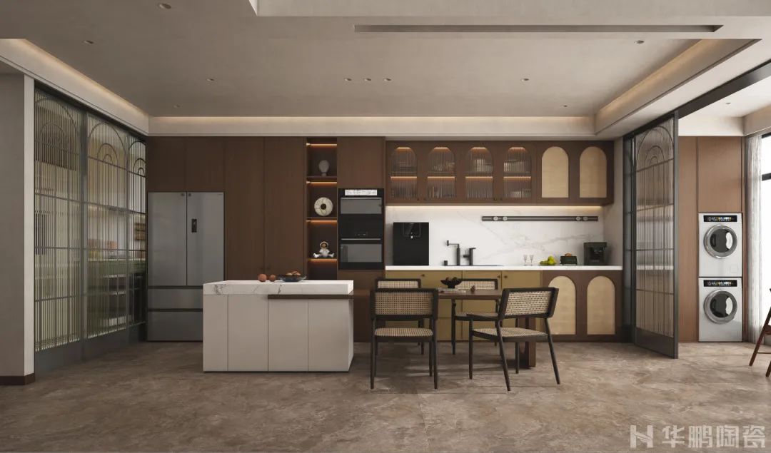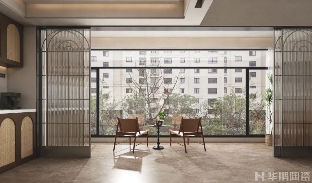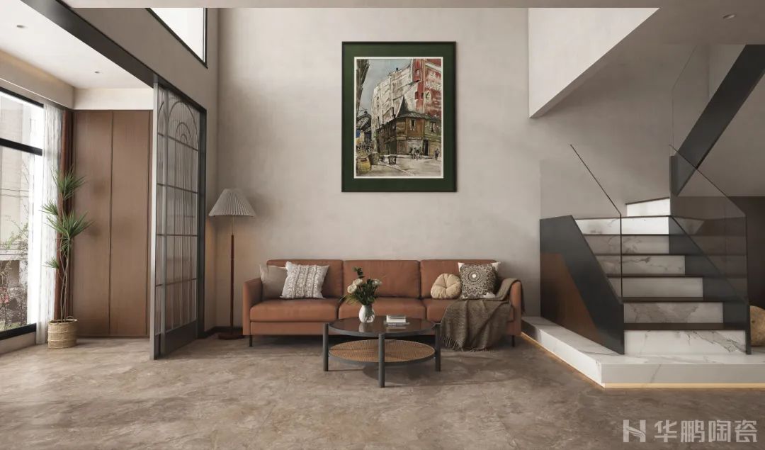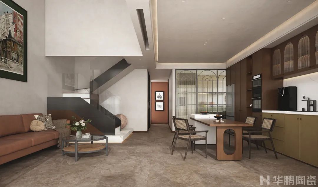 老錢風十分強調簡潔、低調和舒適感,是以質感取勝的家居風格。空間采用魔特咖棕鋪貼,大理石縱橫交錯的紋理,有一種被歲月洗禮的感覺,強化了整個空間的色彩,迅速提升質感與層次。