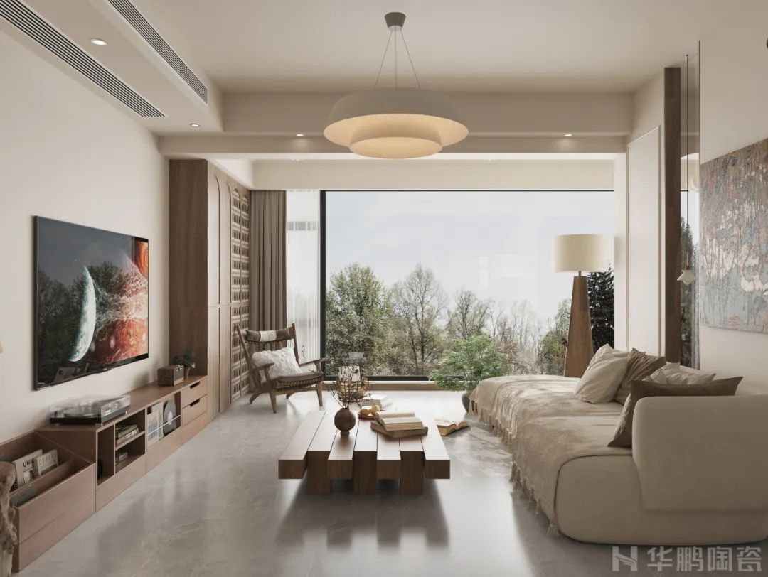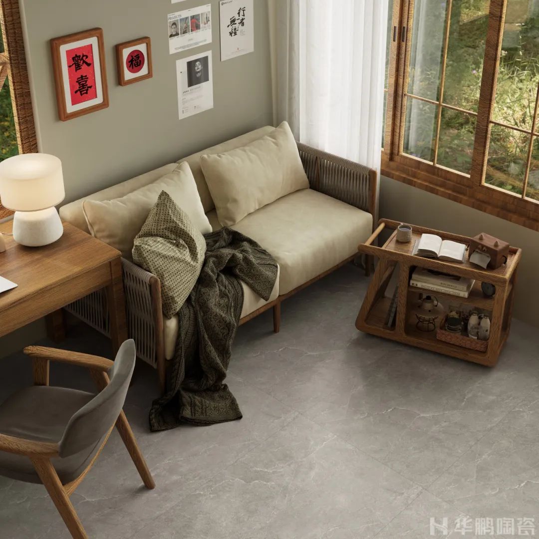 悅己與慢生活已成為當代流行生活趨勢,身處快節奏生活的人們開始放慢匆忙的腳步,希望在專屬自己的避世之所中,享受片刻安寧。華鵬陶瓷以此為設計靈感,以29°立體柔光系列『凱仕灰、德安娜、月影黃』為主材,打造一個現代原木治愈暖居。
