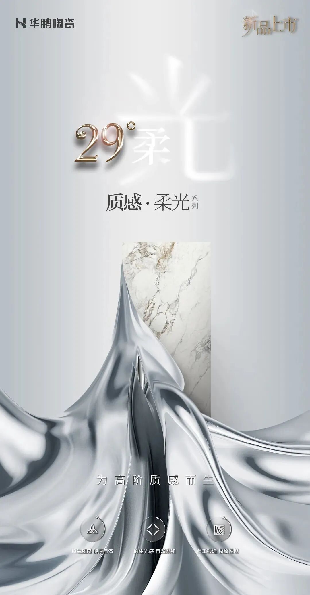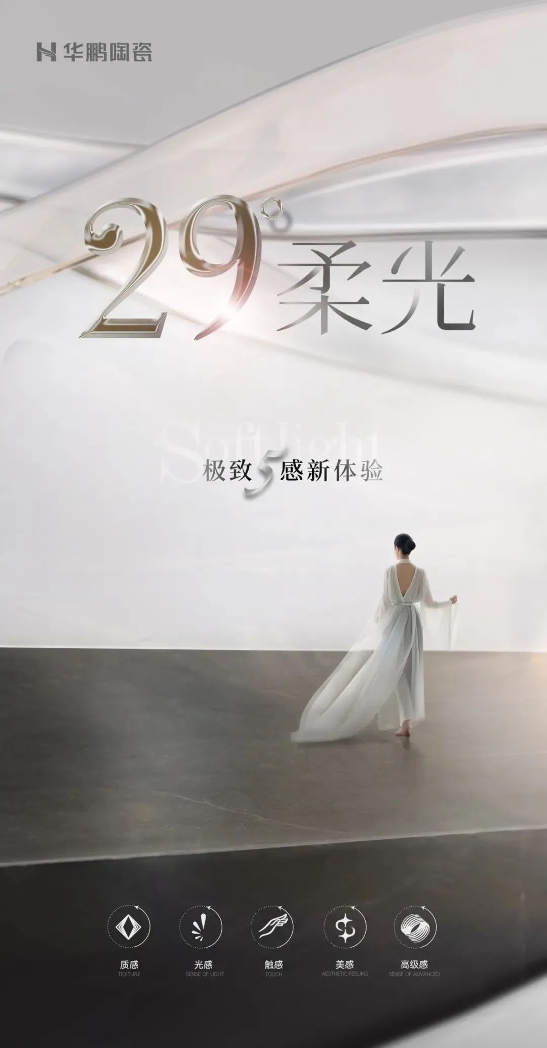 未來,華鵬陶瓷將以 29° 柔光產品為先鋒,聚焦工藝創新、美學設計與用戶體驗,為家庭打造品質格調空間,持續引領柔光磚行業邁向新高度!